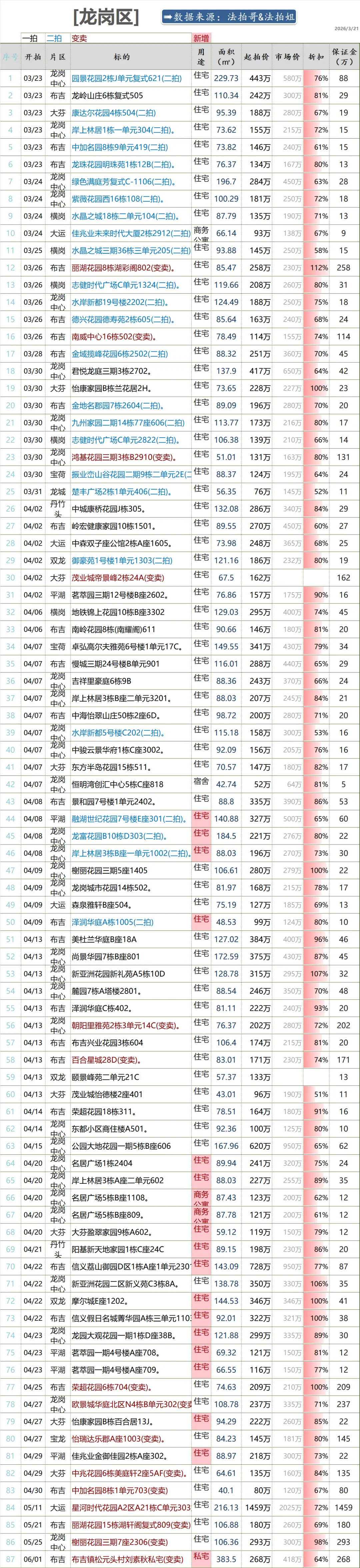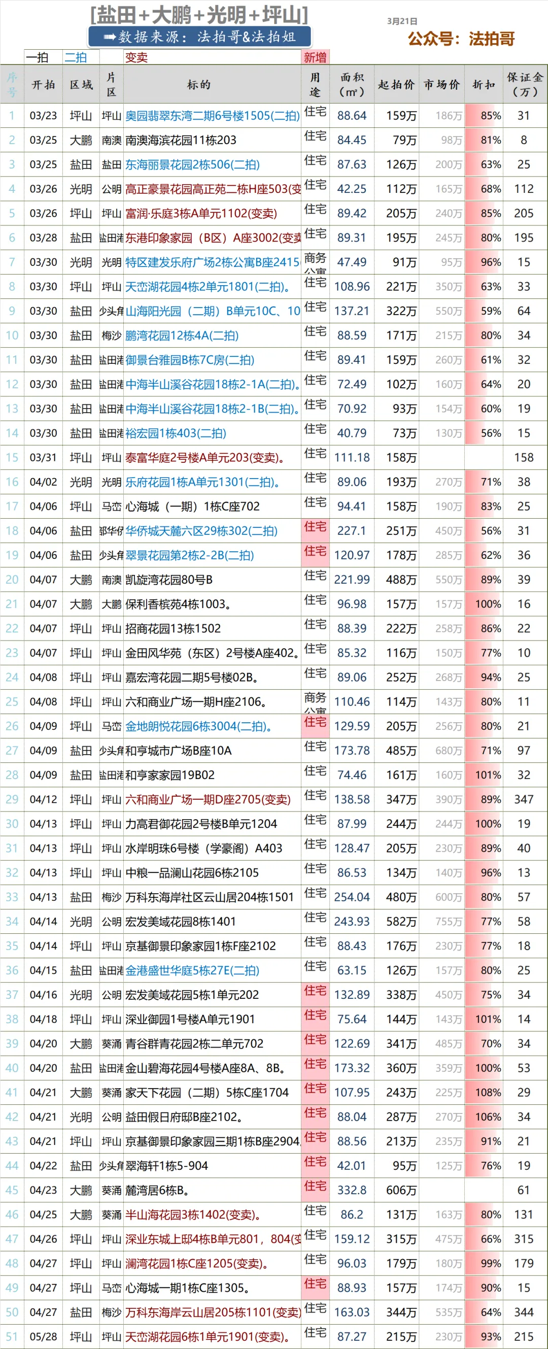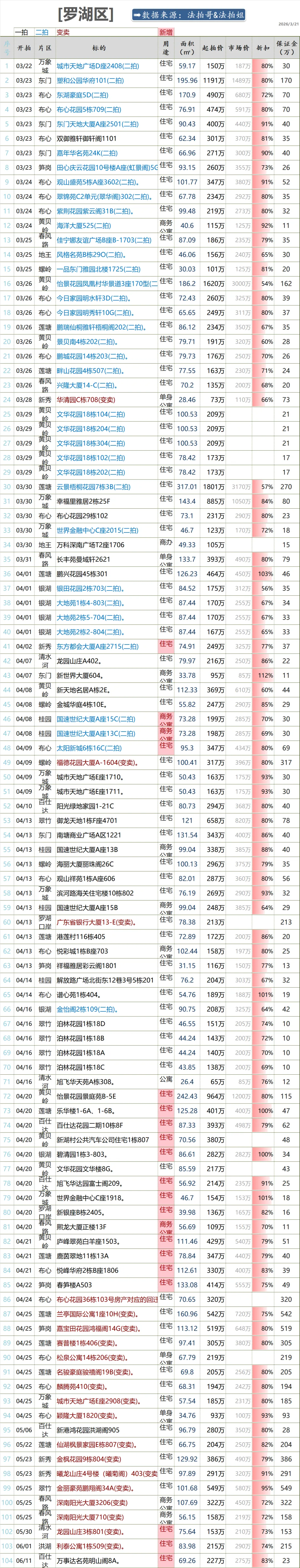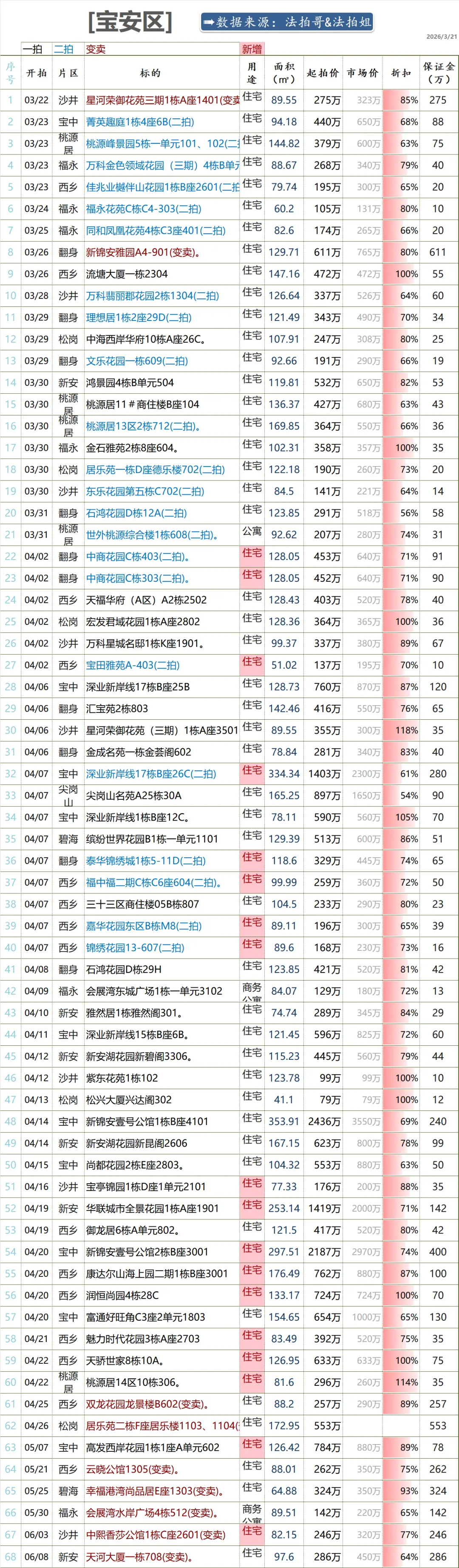深圳市法拍房(拍卖房)本周成交汇总一览表