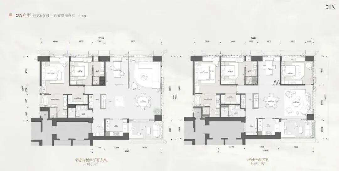 · 403㎡户型: 高区主力户型,视野开阔,空间布局精致,融合了高端生活与社交功能。