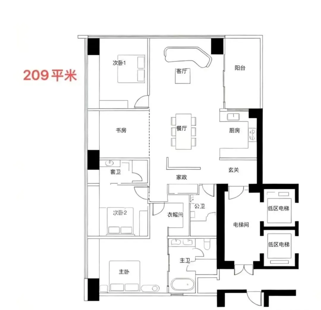 · 198-209㎡户型: 通常是四房设计,适合精英家庭首次入驻深圳湾顶级豪宅,平衡了空间感与总价预算。