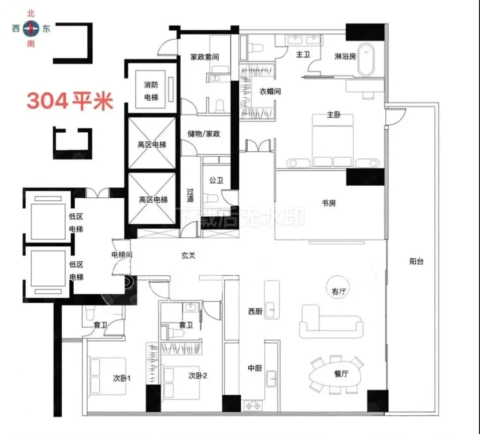 · 304㎡户型: 低区最大户型,空间布局奢华,功能分区明确,满足多代同堂的居住需求。
