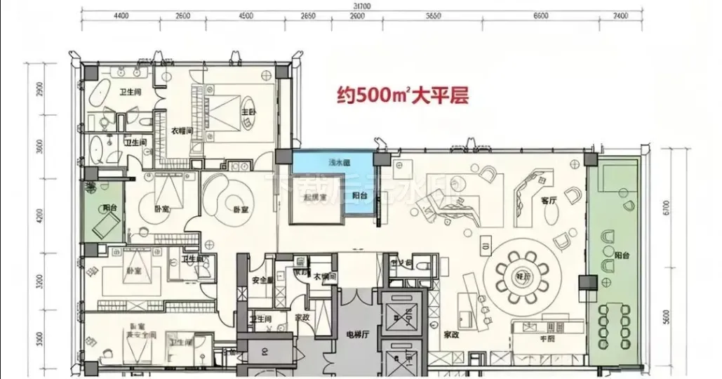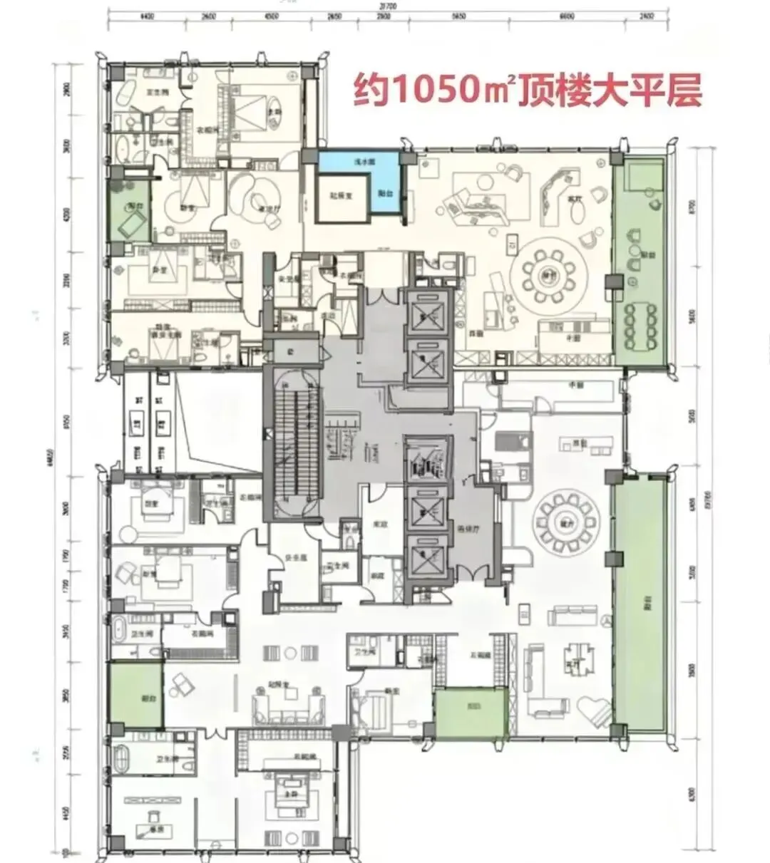 · 1050㎡顶奢大平层:位于顶楼的Penthouse,堪称深圳住宅的巅峰之作,堪比世界级豪宅。