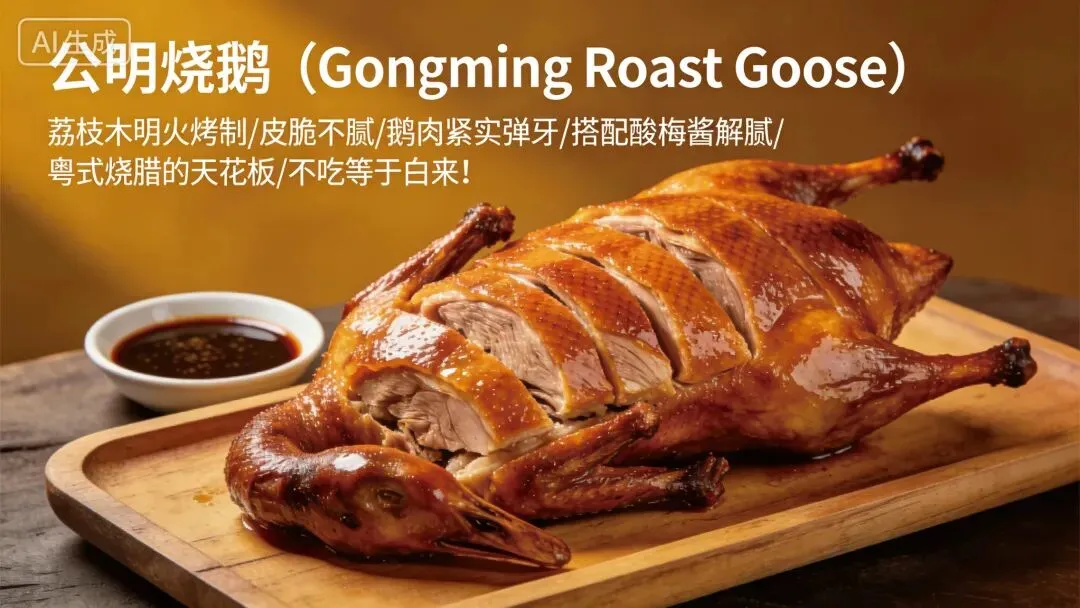 皮脆不腻,鹅肉紧实弹牙,搭配酸梅酱解腻,