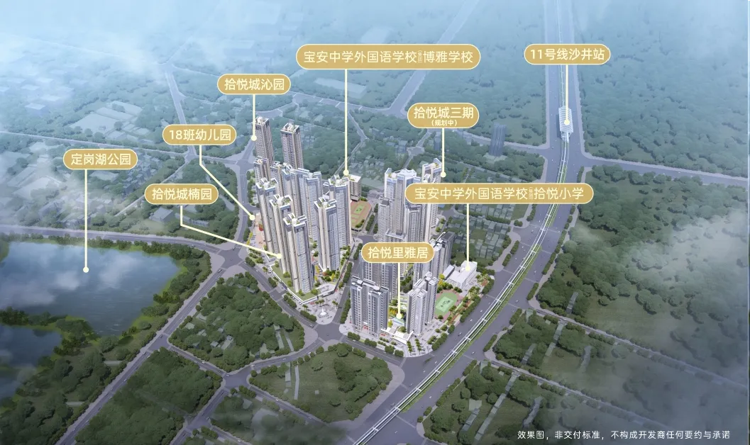 紧邻地铁11号线沙井站,约600-800米,通勤南山、福田等区域便捷,30-50分钟可达核心商务区,适合在西部或南山工作的刚需群体。 2. 现房交付,风险低