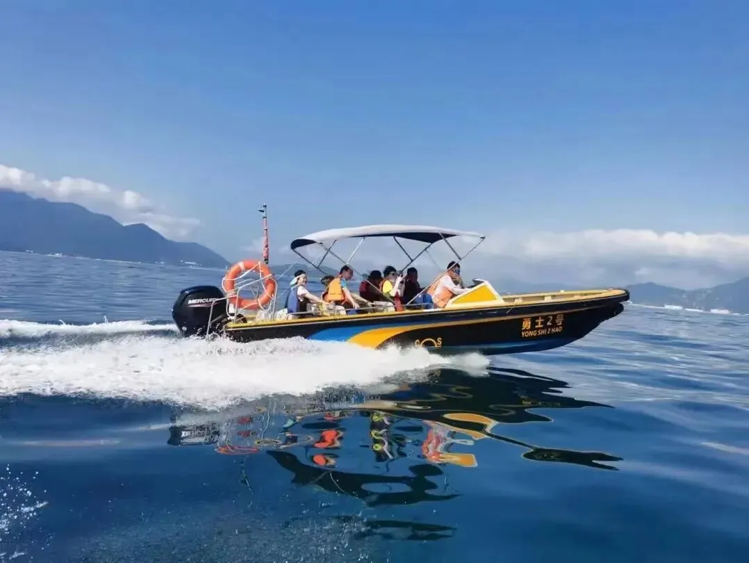 11:00 到达东涌码头,乘快艇飞奔三门岛。沿途欣赏海岛风光,体验海面飞驰电掣的刺激(20分钟航程后登岛北扣码头);