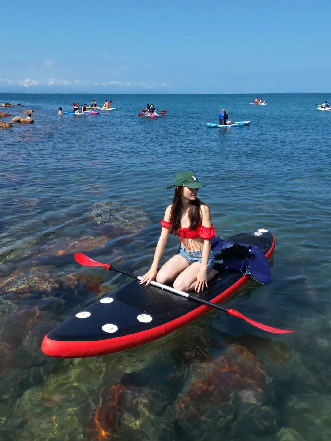 08:00 继续在岛上玩桨板,浮潜,昨天没有玩尽兴的亲们可以岛上嗨起来,大家在海上用桨板摆造型,早上的海水更清澈,如果玩浮潜,能看到清澈海底世界。