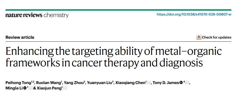 深圳大学彭孝军院士团队,再发Nature系列综述:靶向MOFs精准攻克癌症