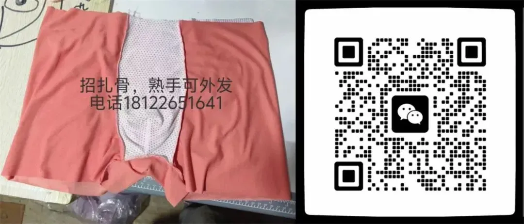 本厂长期生产女装内裤,货源充足,现招聘以下工序:扎骨、拉脚、露骨、人字、封口。(生手可学,熟手可以搬回家)