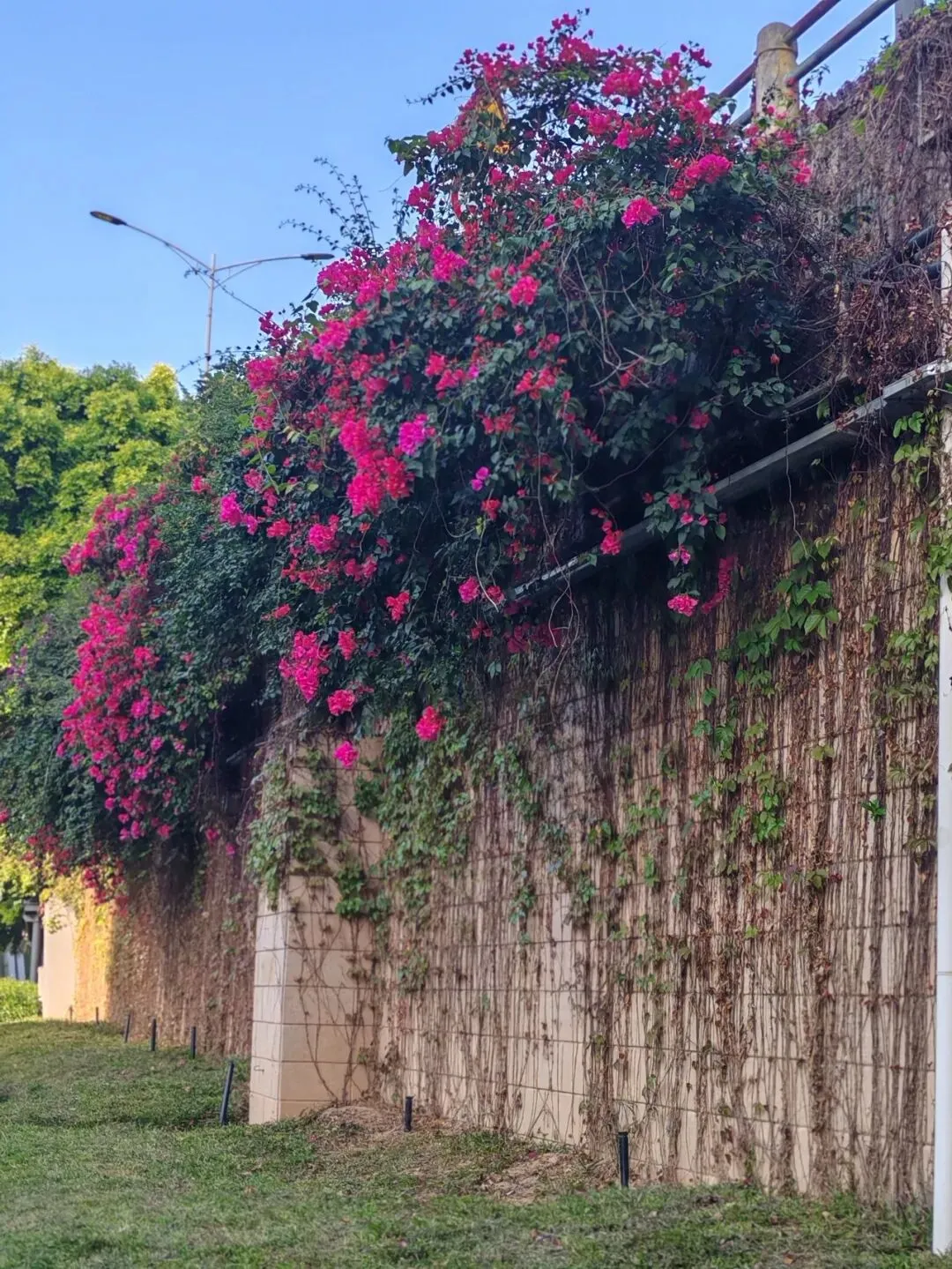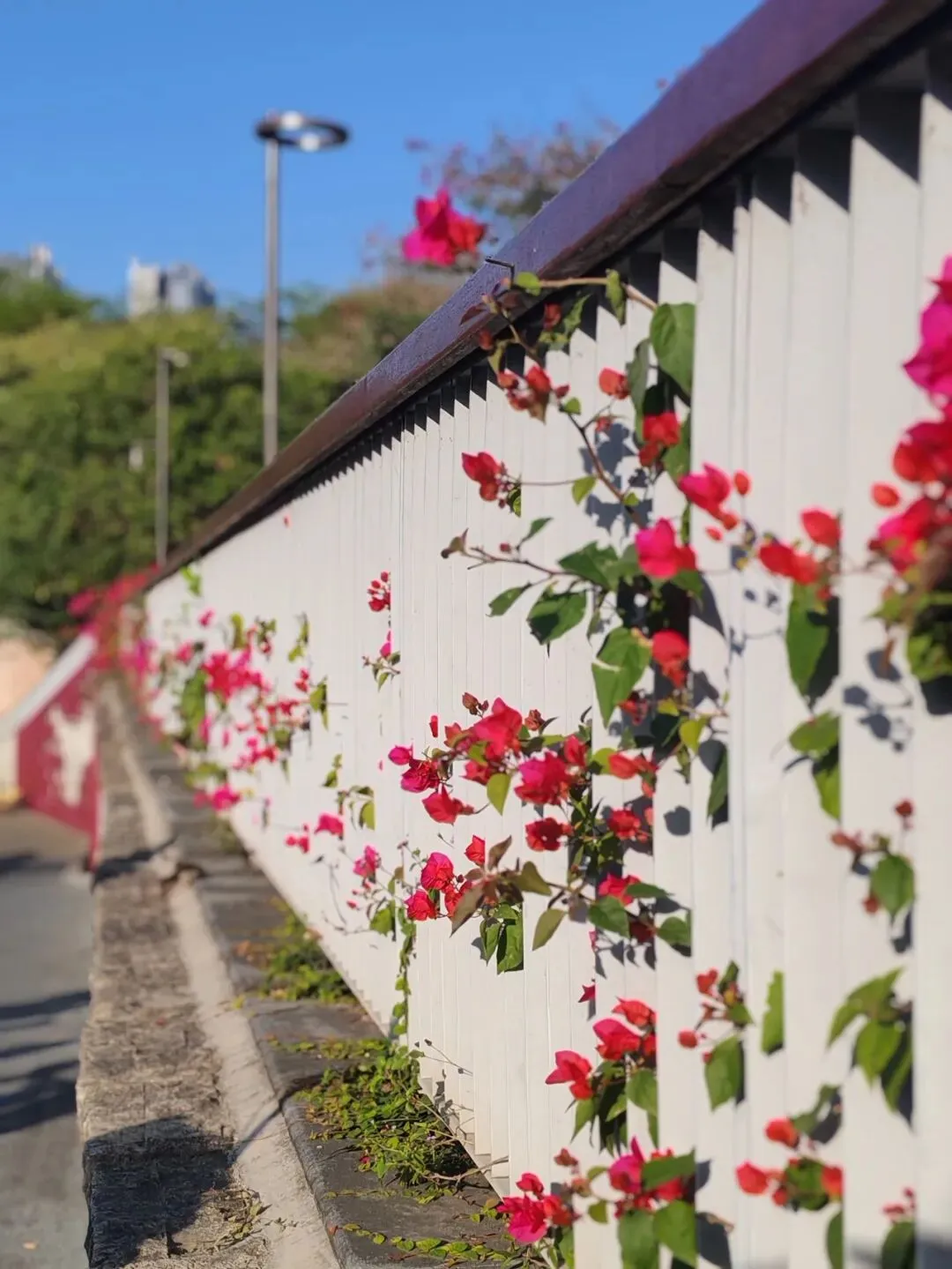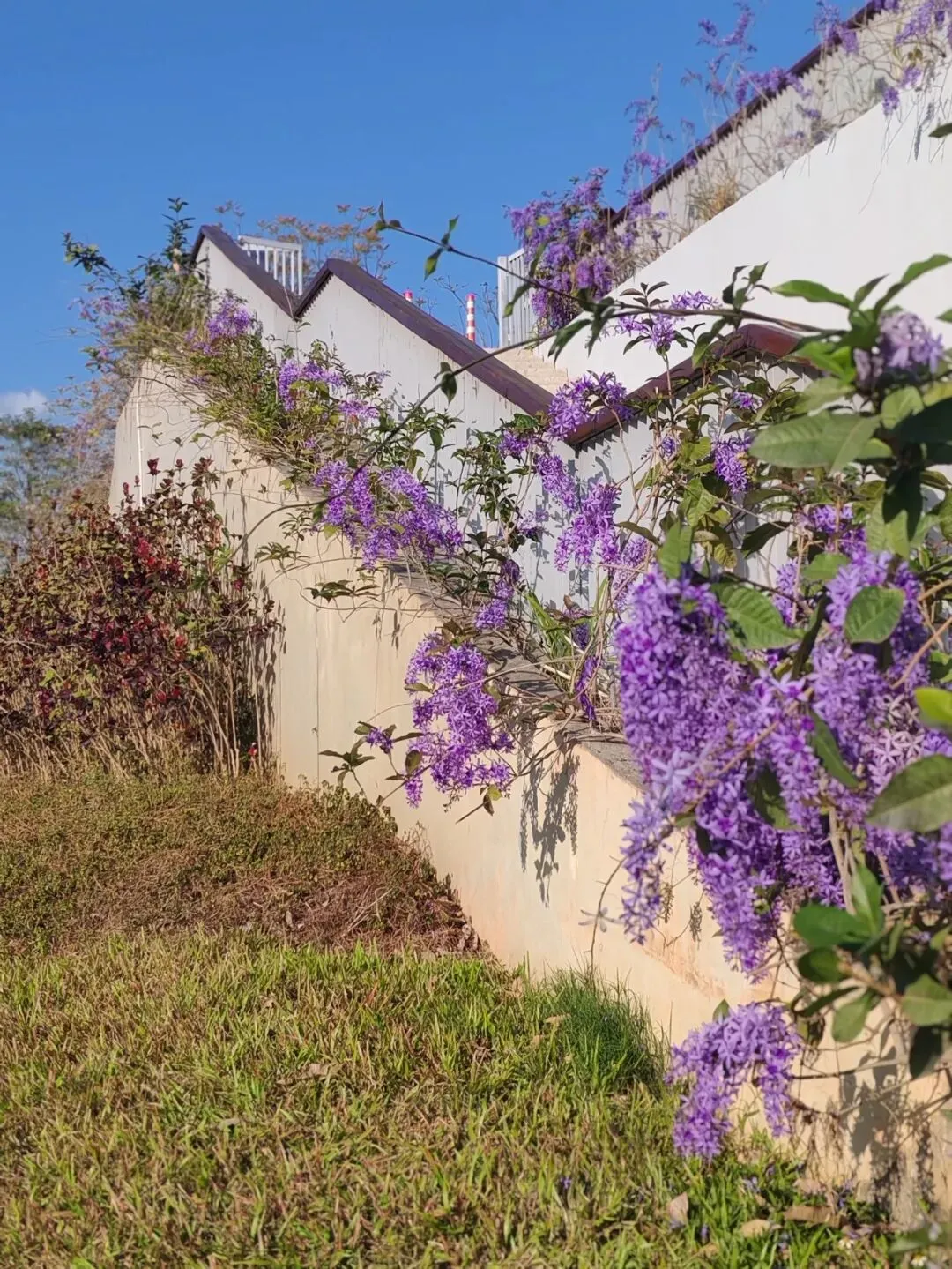 爬在墙上,缀在栏间。