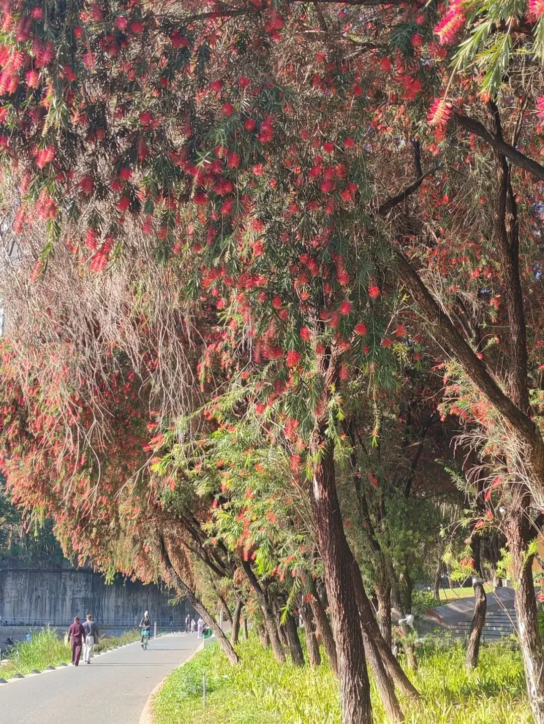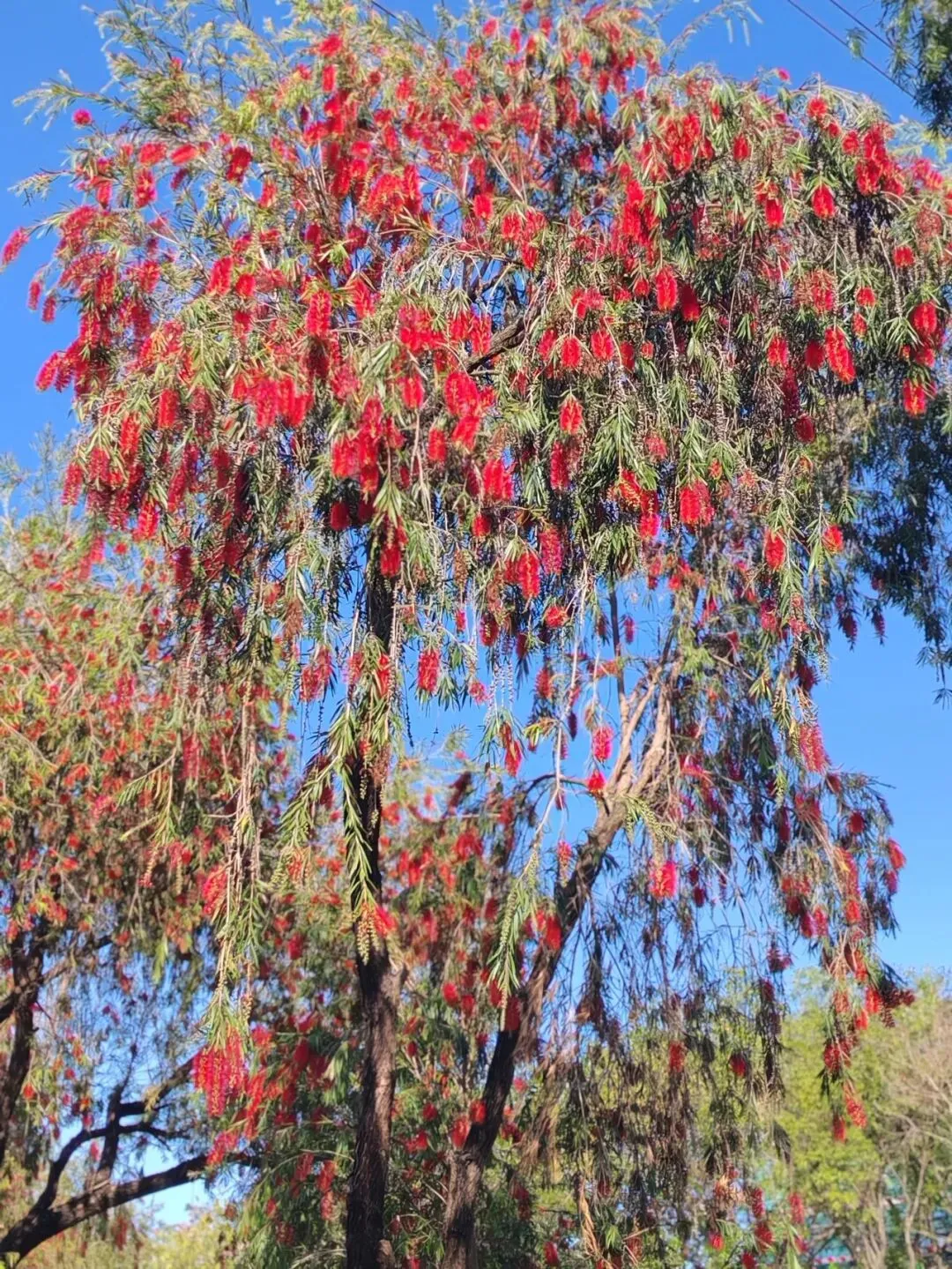 有鲜红的垂枝红千层,