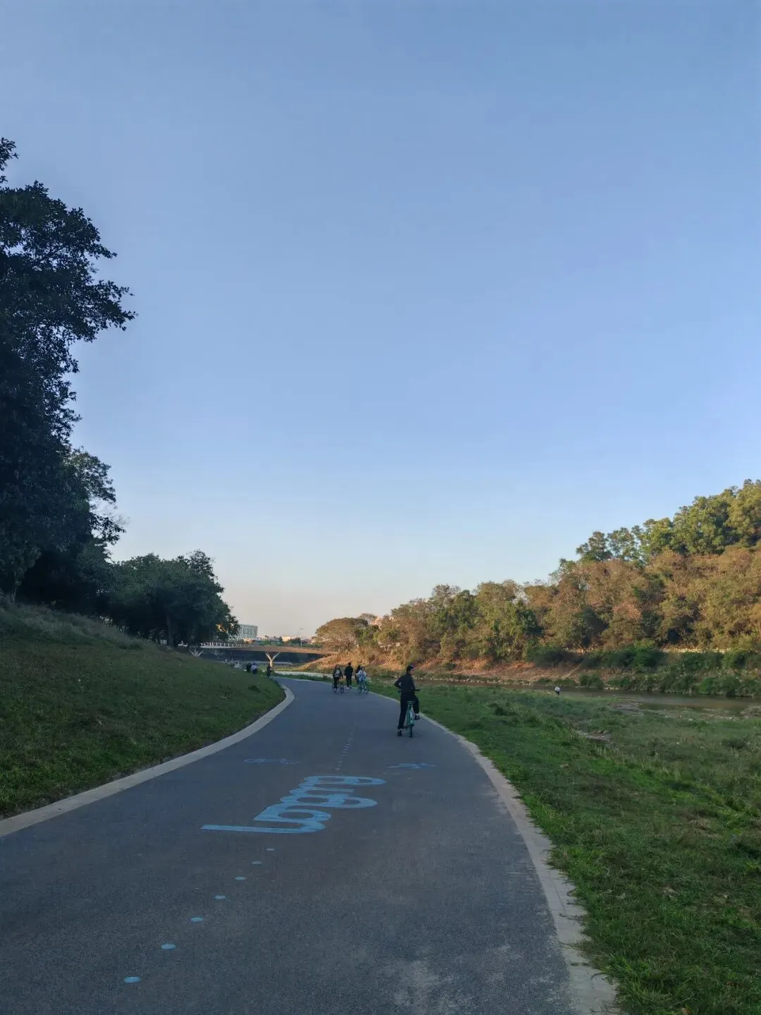 ——这是一条从头到尾都平坦直通的河岸绿道。