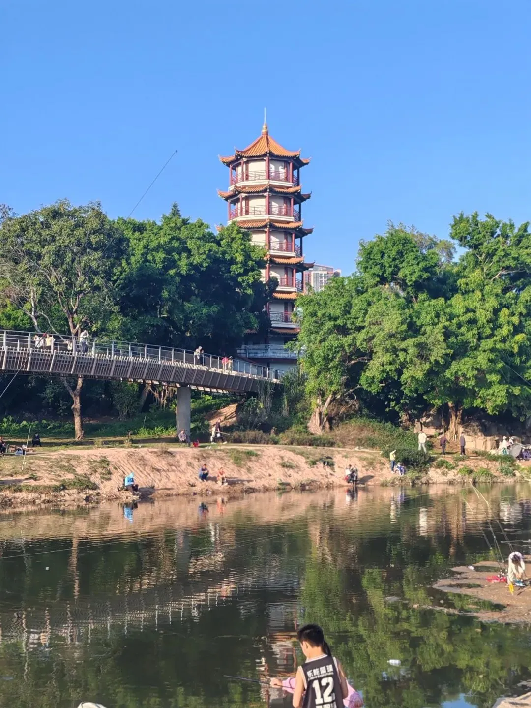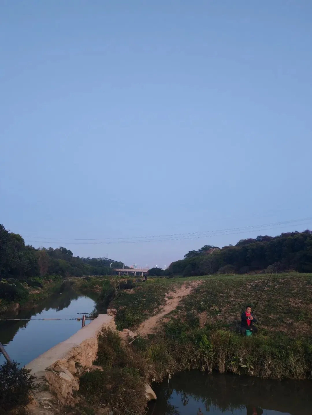 有人在河边垂钓,