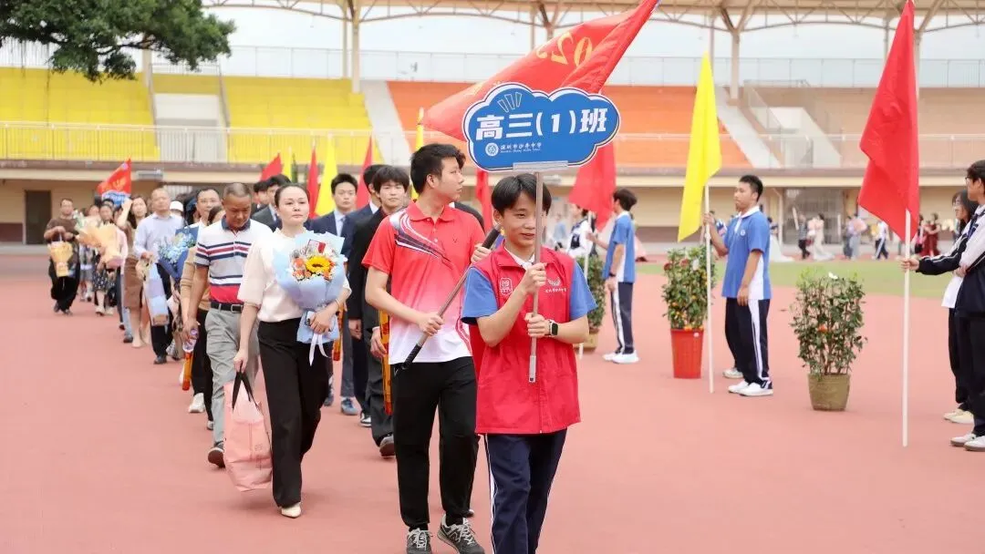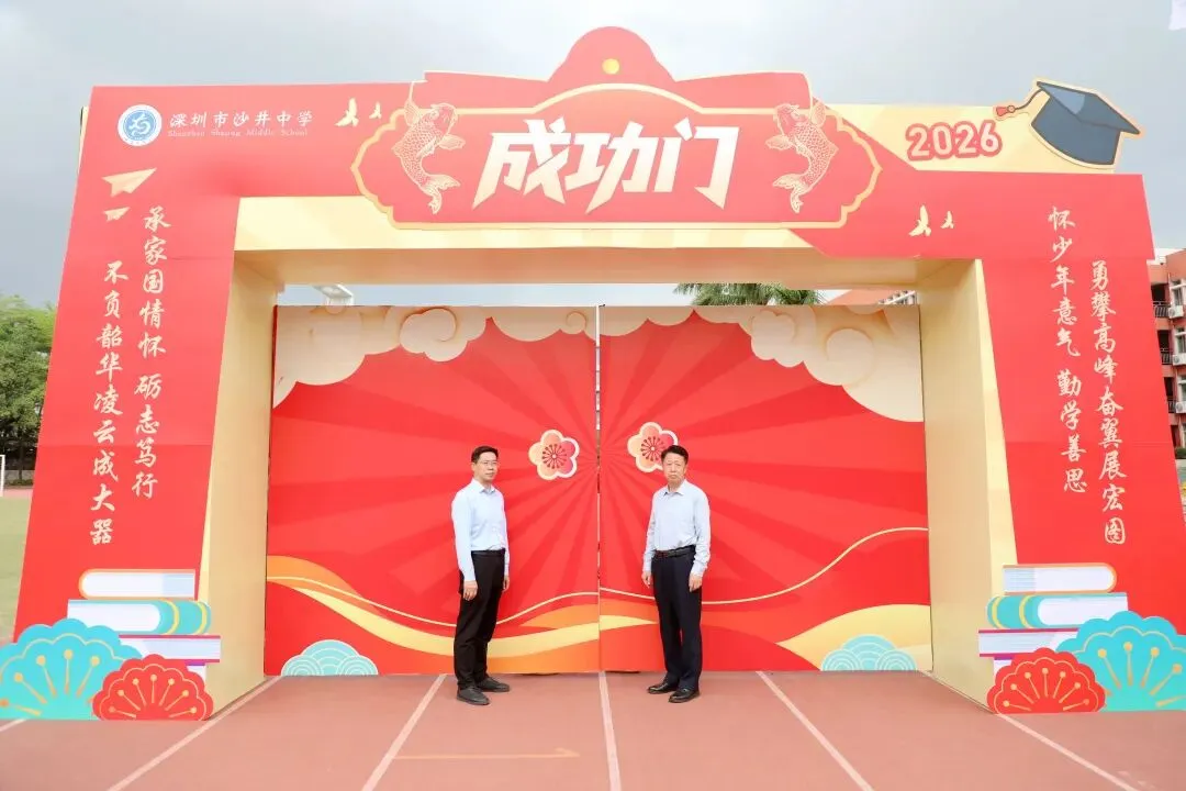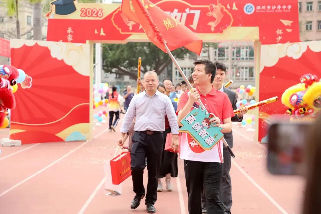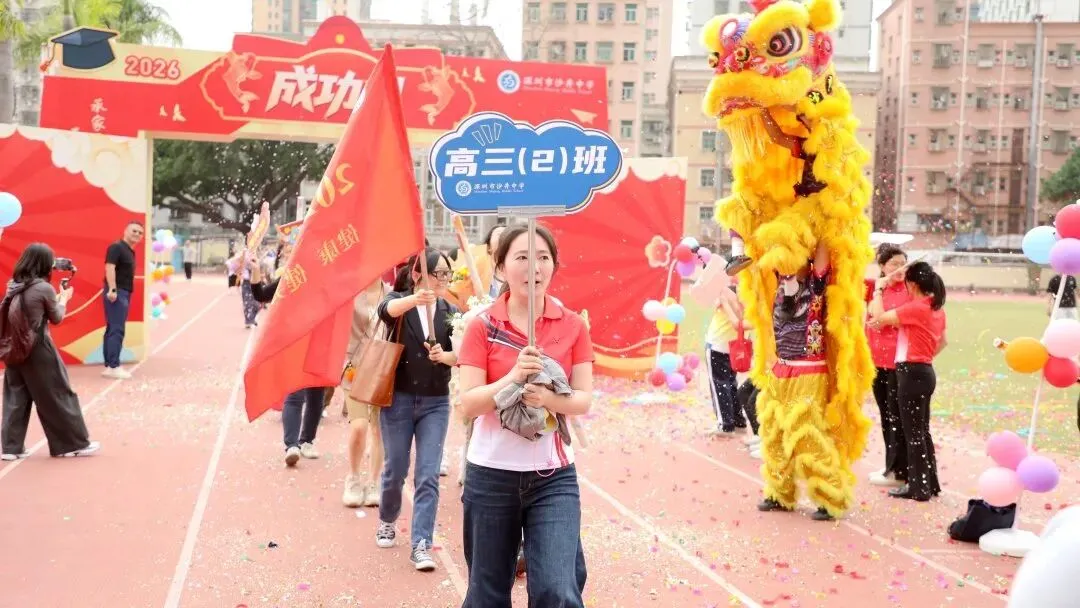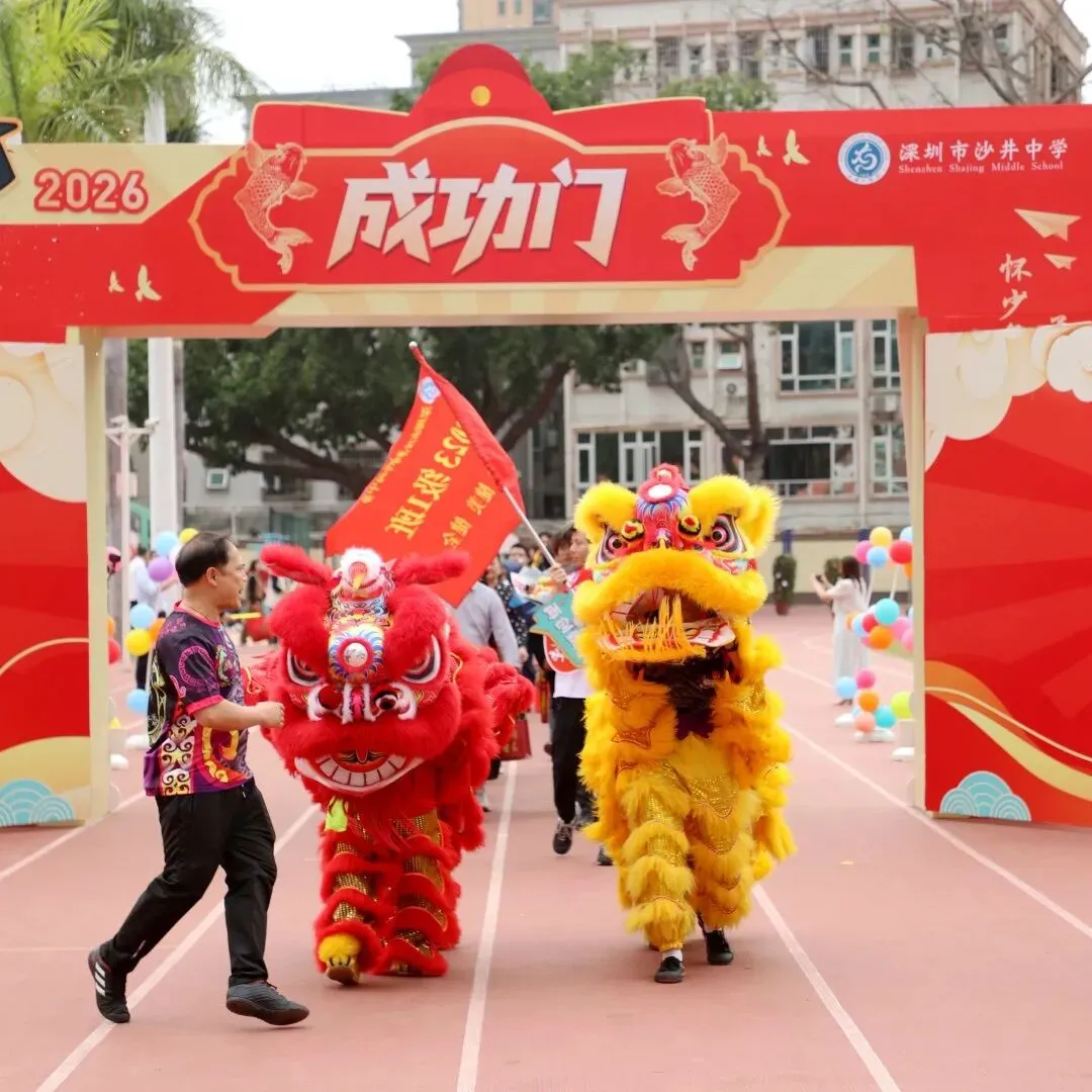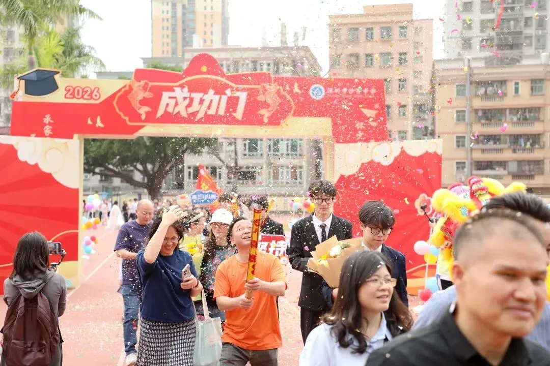 醒狮开道,锣鼓铿锵。班主任举班旗,学生与家长携手并肩,步伐坚定地跨越象征成长与希望的“成功门”。校领导、行政人员、高三全体教师与学生击掌互动,并送上真挚鼓励与祝福。师长的每一次击掌都是传递知识力量,每一声祝福都是点燃奋斗激情。这庄严的跨越,不仅是成长历程的重要见证,更是家校协同、以温暖陪伴筑牢学生健康底色的生动实践。