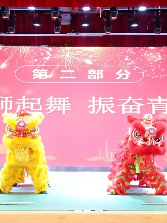 专业醒狮团队踏鼓登场,矫健身姿翻腾跳跃,锣鼓声点燃全场激情。狮子采青纳福的灵动演绎,寓意学生前程似锦,以蓬勃朝气叩响成人之门。