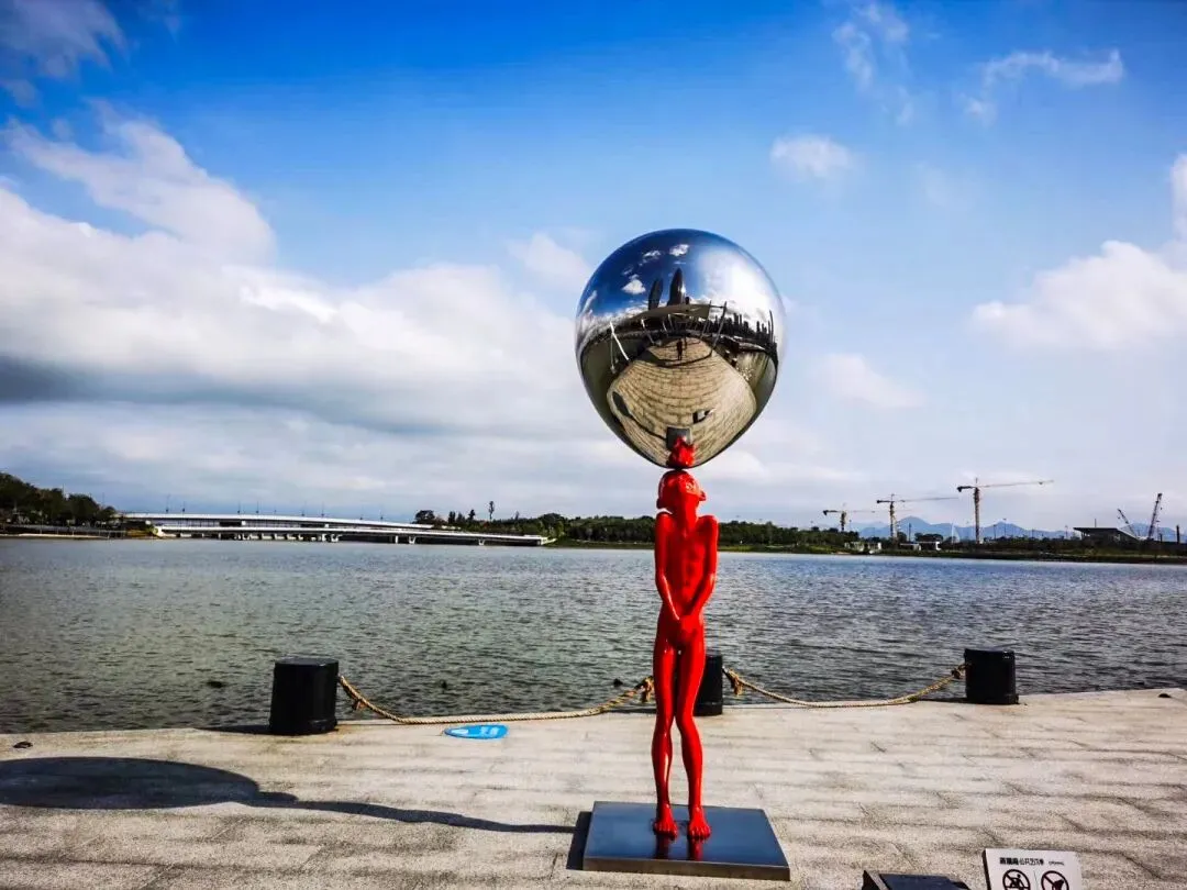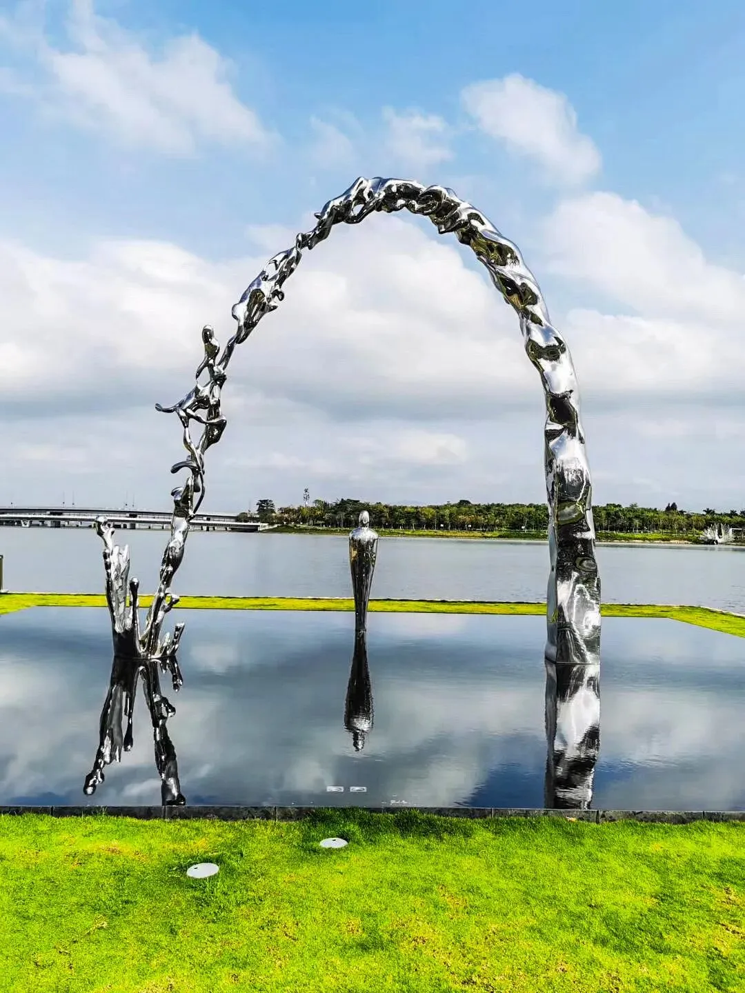 这场 “期待与失落” 的碰撞,让我想起公园深处的另一组雕塑 ——《影子与马》的一红一黑、一实一虚,《浮云》的洁白轻盈与天空呼应,《巨浪》的不锈钢材质折射出大海的浩瀚。此前我也曾好奇它们的 “标准答案”,但当我放弃查看铭牌,任由目光与雕塑对话,反而收获了更多感动:《康龙》的萌态让我想起传统文化的新生,《孵化》的黑脸琵鹭造型让我联想到城市对人才的孕育。