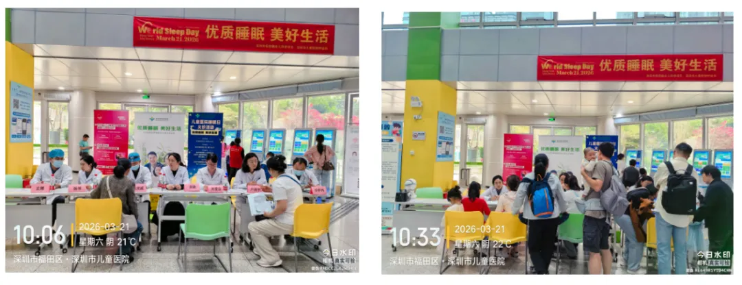 2026年3月21日作为今年的“世界睡眠日”,围绕“优质睡眠,美好生活”的主题,深圳市儿童医院在福田院区A栋一楼门诊大厅举办了一场温暖而专业的多学科义诊活动。本次活动由深圳市医防融合儿科学项目组牵头,联合医院呼吸科、耳鼻喉科、口腔正畸科、内分泌科共同开展,旨在帮助家长和孩子解决睡眠困扰,让健康睡眠成为孩子成长的坚实基石。