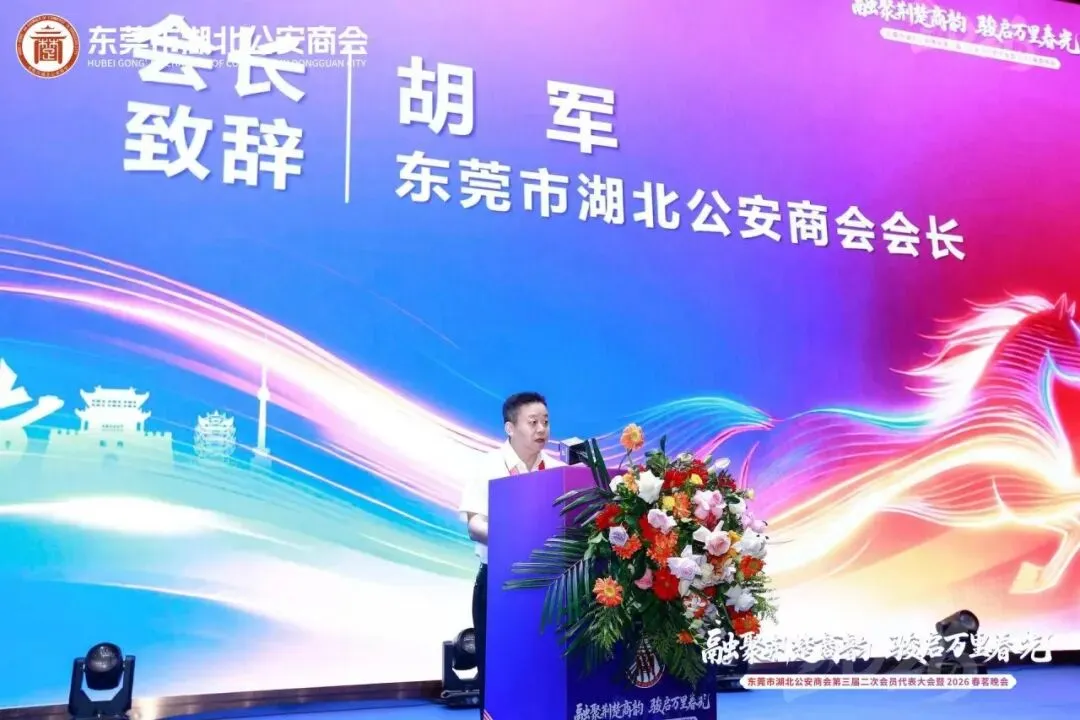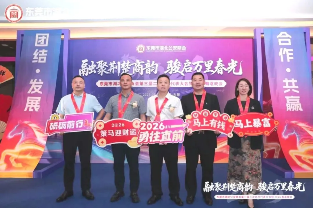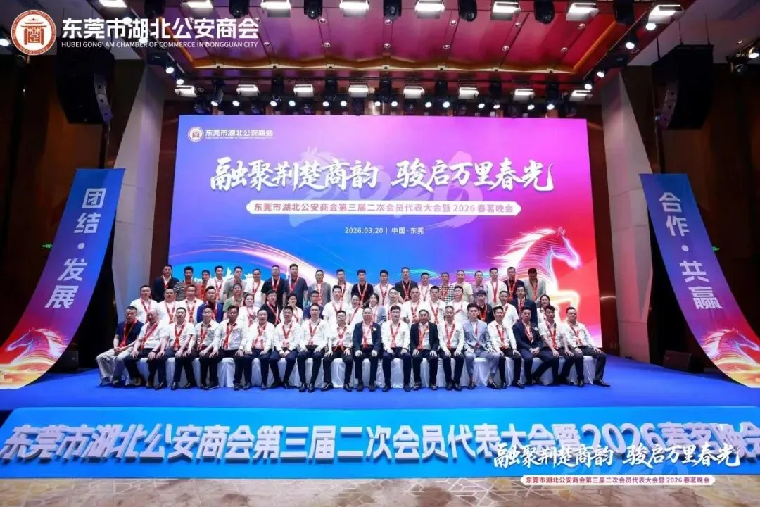 深圳市湖北荆州商会向东莞市湖北公安商会第三届二次会员代表大会的圆满召开,以及 2026 春茗晚会的顺利举办,致以最热烈的祝贺。我们衷心祝愿东莞市湖北公安商会在理事会班子的带领下,会务蒸蒸日上、发展节节攀升,持续凝聚在粤公安籍企业家力量,充分发挥政企沟通桥梁纽带作用,为推动东莞与湖北两地经济社会高质量发展贡献楚商力量。