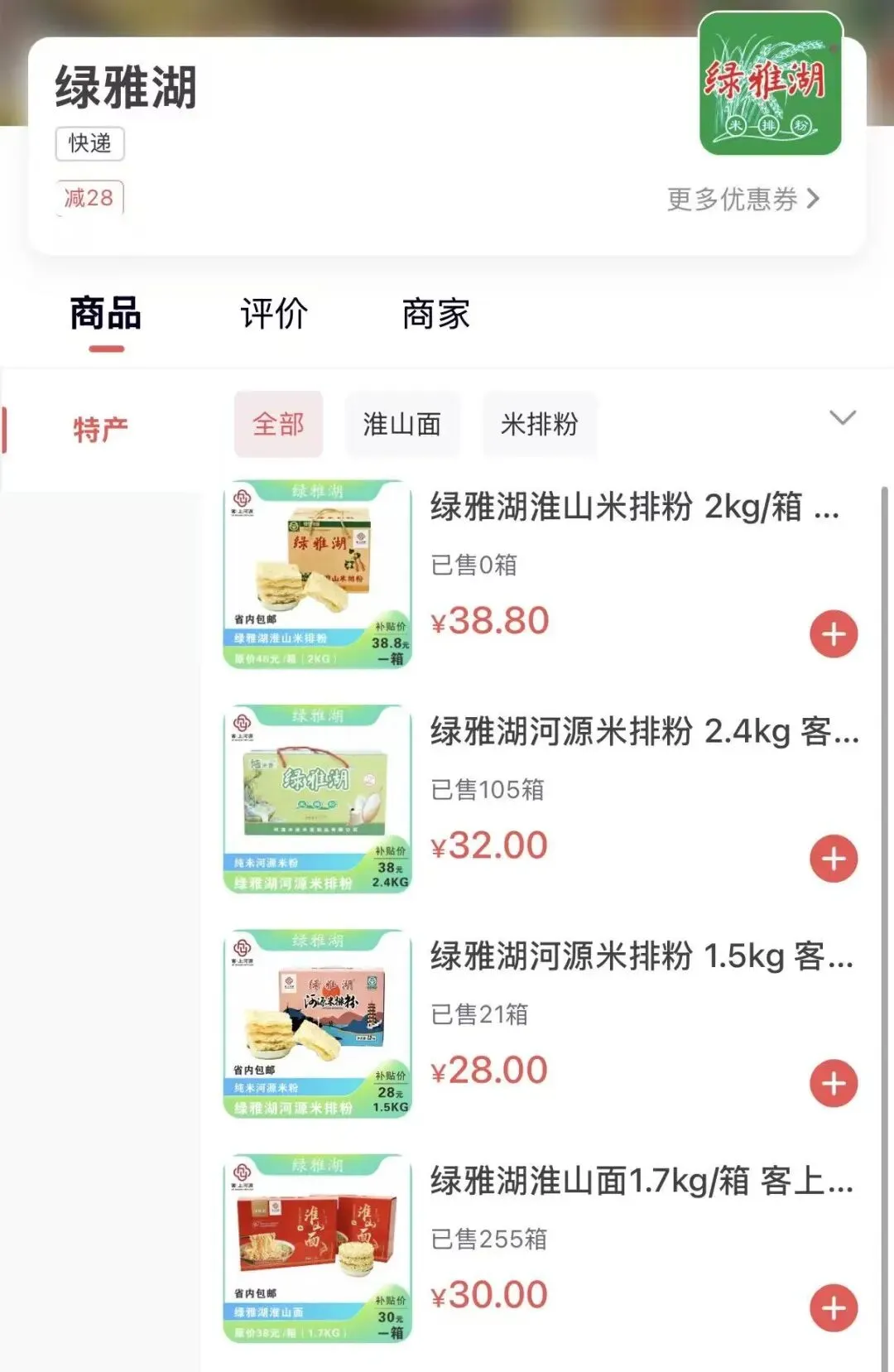 ★包邮:大河河大拉面、捞面,绿雅湖淮山面、米排粉,美芳源腐竹。