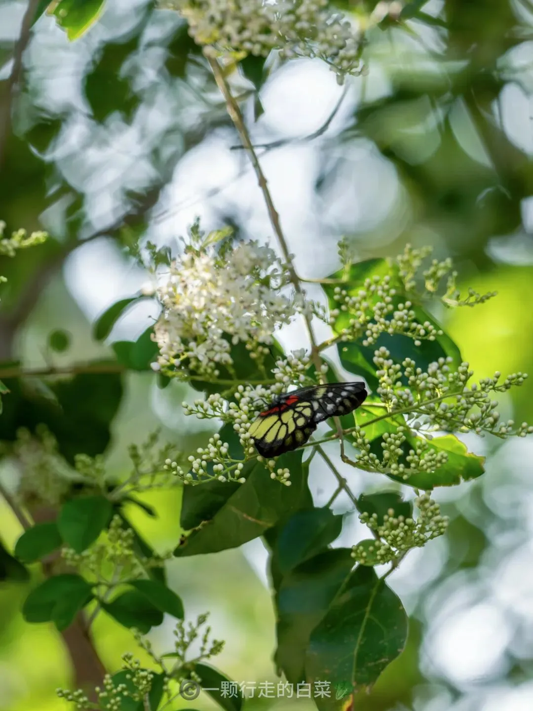常见的,一般是报喜斑粉蝶。它们停在花序上吸食花蜜,有的还在这里追逐、求偶、停留,争取在大好春光结束前,完成属于它们的“人生大事”。
