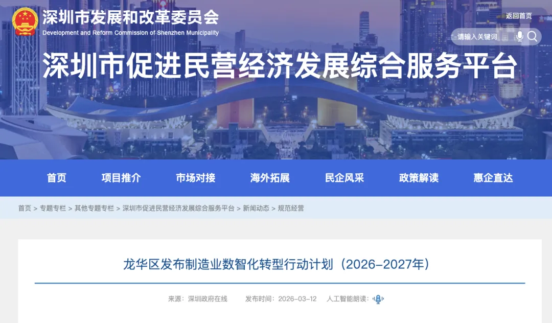 此外,深圳还拥有完善的产业生态与政策护航,龙华区出台《制造业数智化转型行动计划(2026—2027年)》,发放“算力券”降低企业研发成本,构建区级算力调度中心融入国家“东数西算”布局。