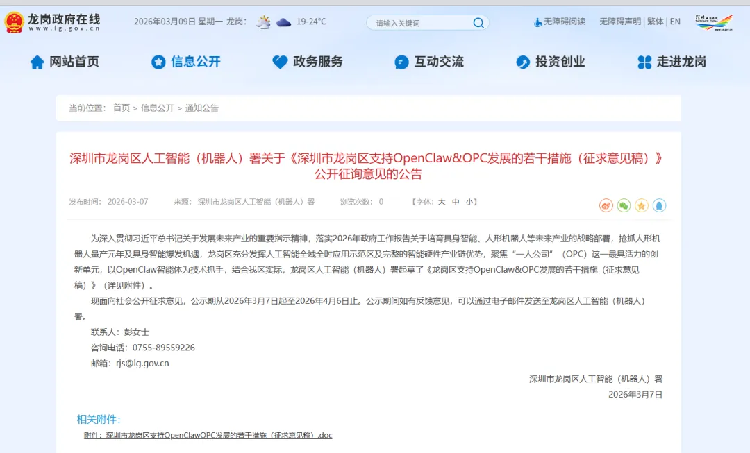 深圳市龙岗区拟出台支持OpenClaw&OPC发展的若干措施(业内著名的“龙虾十条”),对龙虾盒子相关企业给予补贴、算力支持、人才扶持等全方位保障。