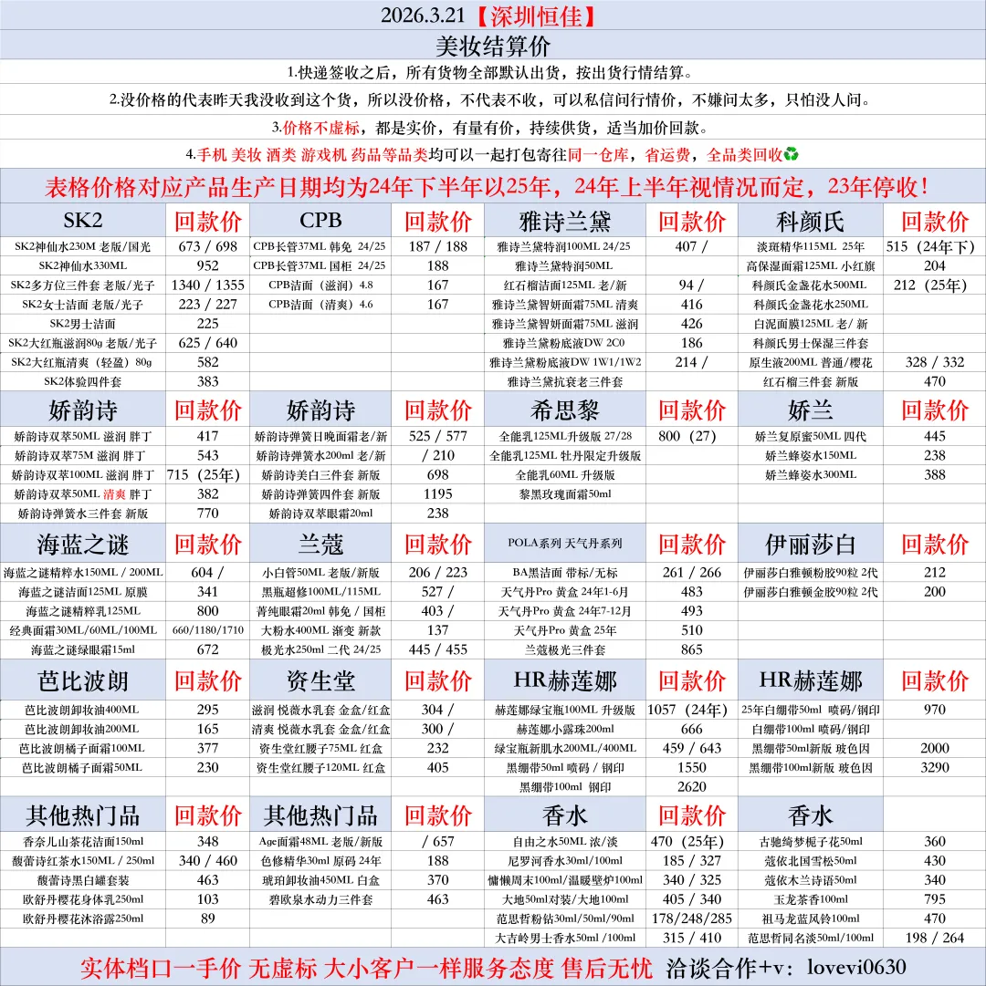 2026.3.21深圳恒佳数码,美妆结算价(一手档口直收)