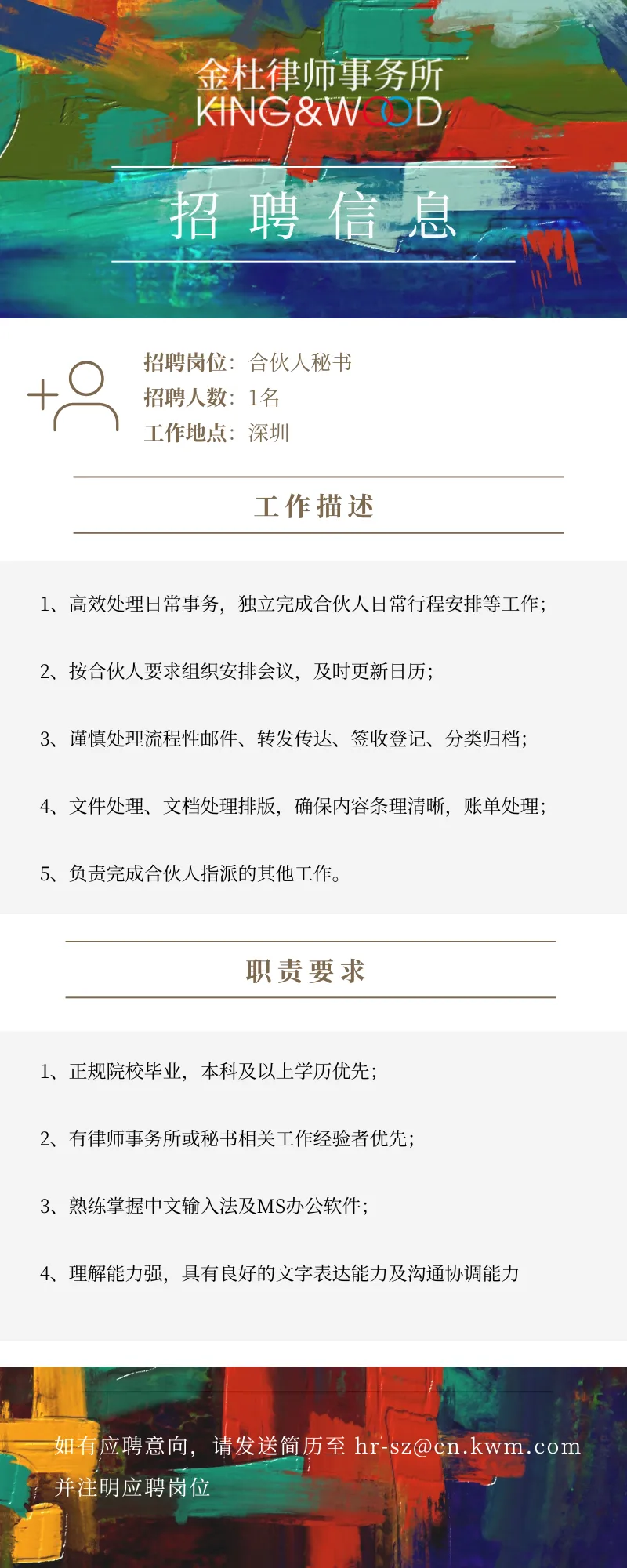【招聘岗位】:合伙人秘书