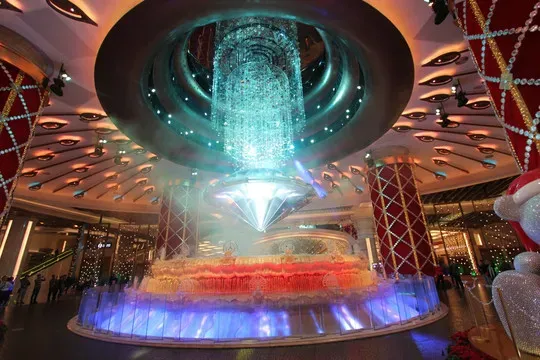 一颗高达3米的璀璨巨钻会在水幕中央缓缓旋转,