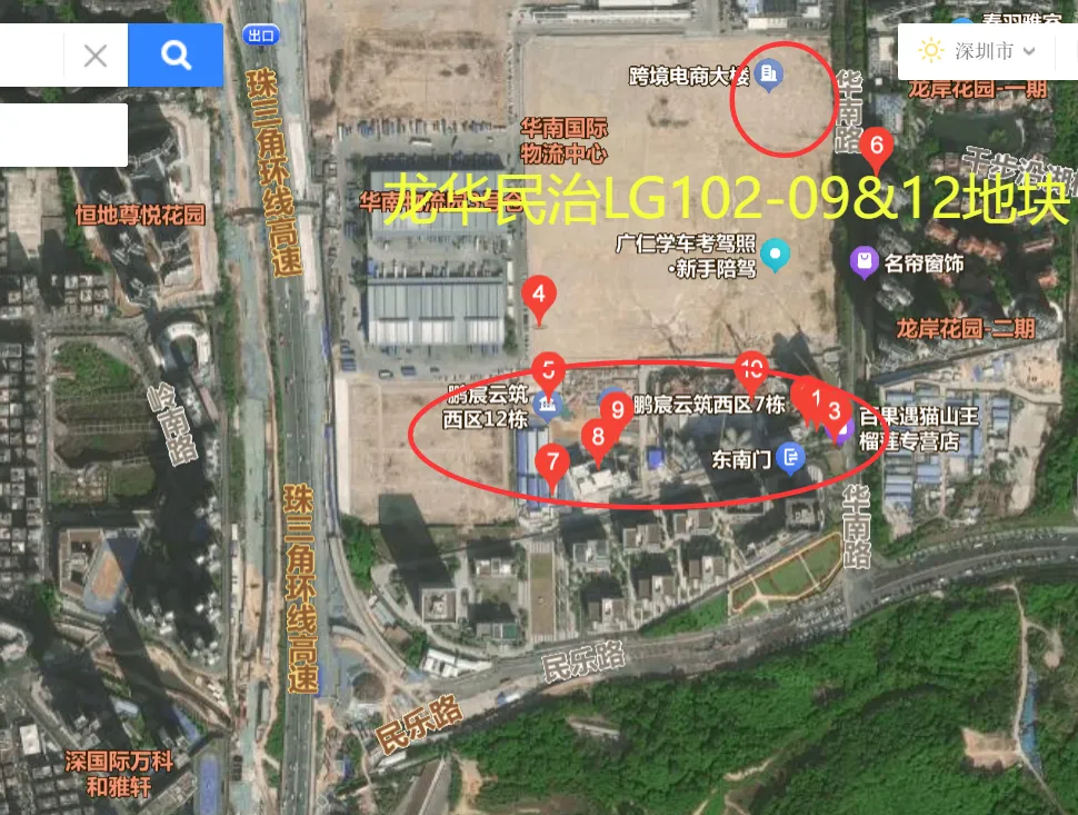 龙华民治LG102-09&12地块紧邻深圳北站,产城融合配套成熟,已经有很多的新房林立;