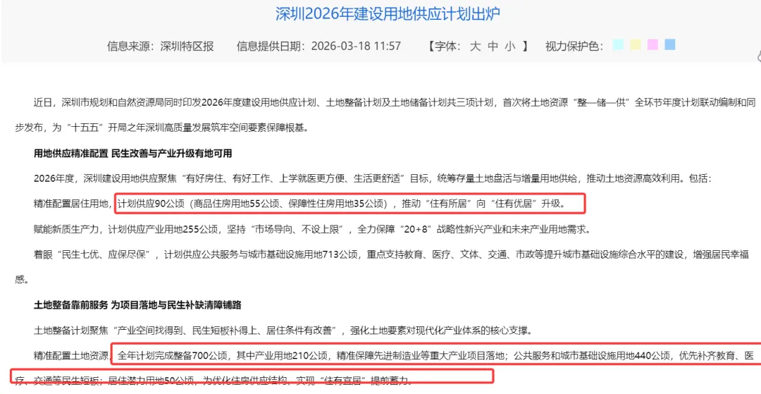 昨天(3月18日)深圳2026年建设用地供应计划出炉。
