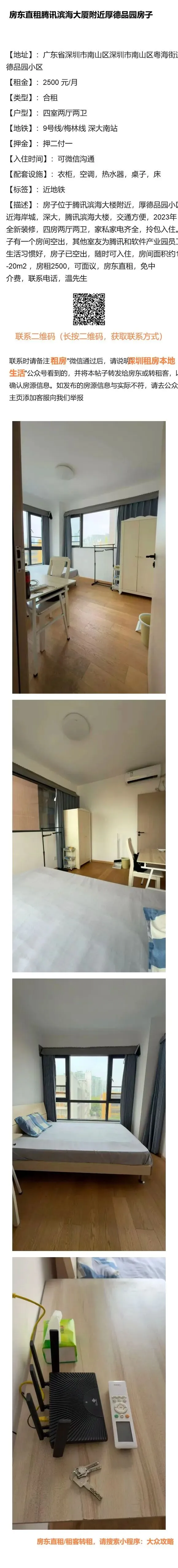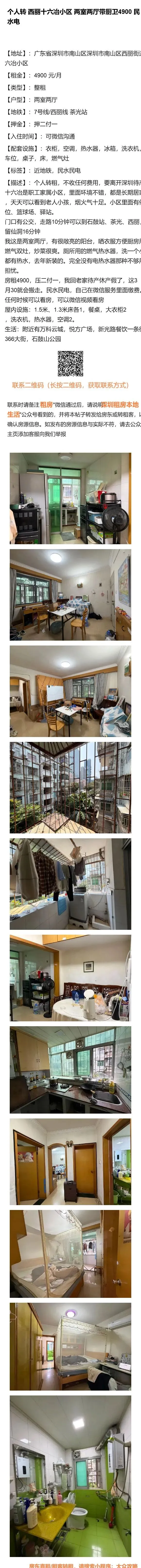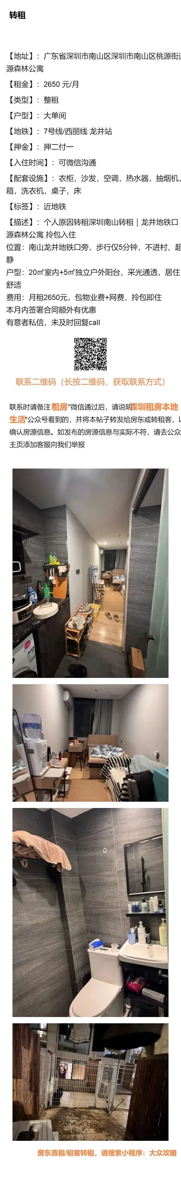 【深圳租房本地生活:免责申明】以上内容受用户委托发布,谢绝转载。房源信息的真实性、合法性由提供者负责,本公众号不声明或保证内容之正确性和可靠性,深圳租房需谨慎,请先核实出租人身份,仔细阅读租房合同,切勿轻易转账、交订金等,房屋出租过程中产生的一切问题,与本公众号无关。【深圳租房本地生活:特别申明】深圳租房本地生活没有任何线下业务人员,请勿轻信冒认我司线下工作人员及电话沟通人员,我司目前唯一对外沟通窗口为公众号主页客服微信:Hey_Beijinger