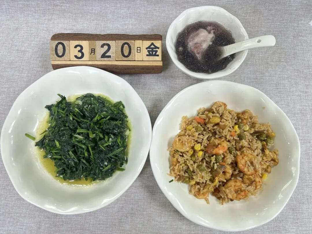海鲜香焗饭、蒜蓉菠菜、黑豆骨头汤