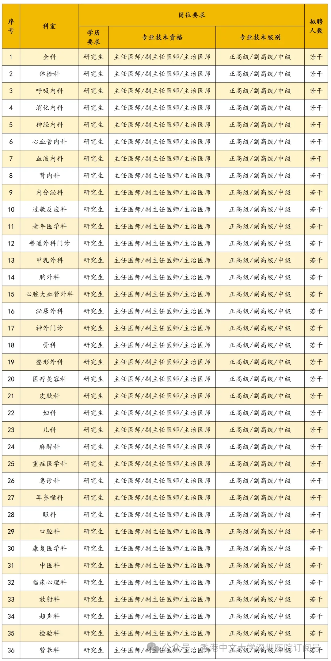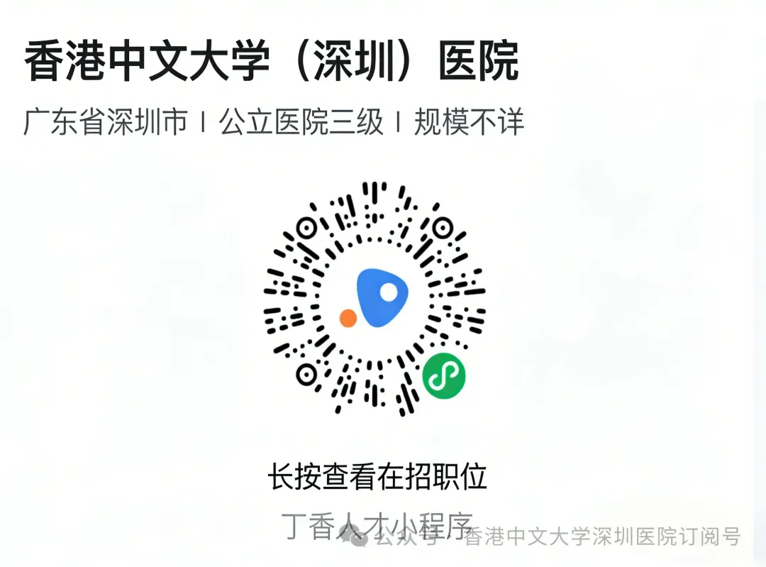 岗位具体要求及简历投递方式:登录丁香人才官网搜索香港中文大学(深圳)医院投递相应岗位: