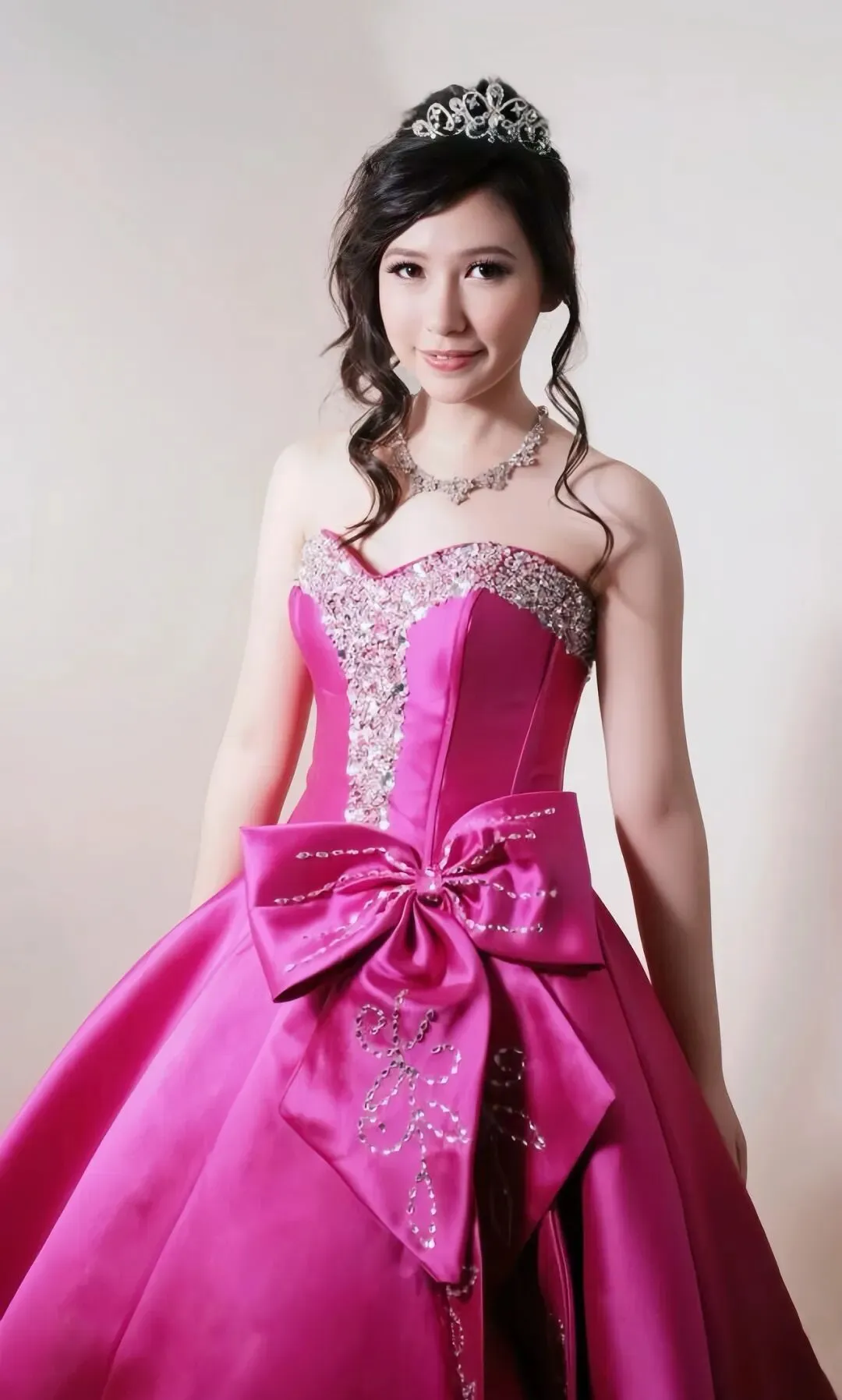 在晚装的国度里,色彩与线条从来不是沉默的。深圳星熠汇今季倾心呈献的这款桃红色缎面布心形胸晚装,以一抹沁人心脾的绯色,与Y型闪石的灵动轨迹,共同书写了一场关于优雅与光芒的对话。它不喧哗,却自有声。桃红缎面:柔光里的深情告白缎面,是晚装世界中永恒的抒情诗人。星熠汇甄选高支数缎面布料,触手生温,垂坠如流泉。桃红色并非张扬的艳,而是调和了玫瑰的馥郁与落霞的温柔——既有着少女的娇羞,又不乏成熟女性的笃定。灯光掠过时,布面泛起细腻的光泽涟漪,宛如月光铺陈于花瓣之上,低调,却无法忽视。