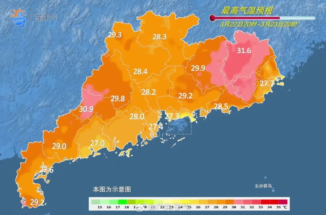 3月23日-27日,多云到晴天,早晚有(轻)雾,气温回升,午间体感较热。