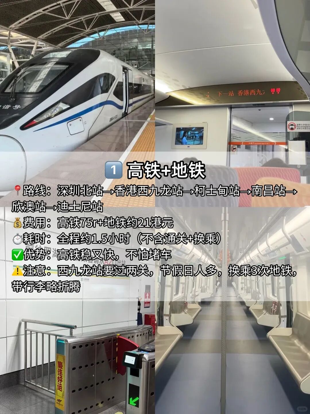 📍路线:深圳北站→香港西九龙站→柯士甸站→南昌站→欣澳站→迪士尼站