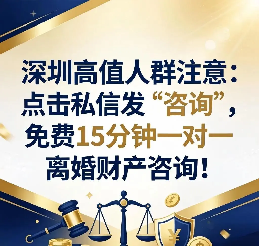 深圳的高净值人群,别再把离婚财产问题交给“百度”和“朋友”了!点击私信发送“咨询”,让专业律师帮你分析案件走向,制定初步策略——免费的,才是最值得珍惜的!