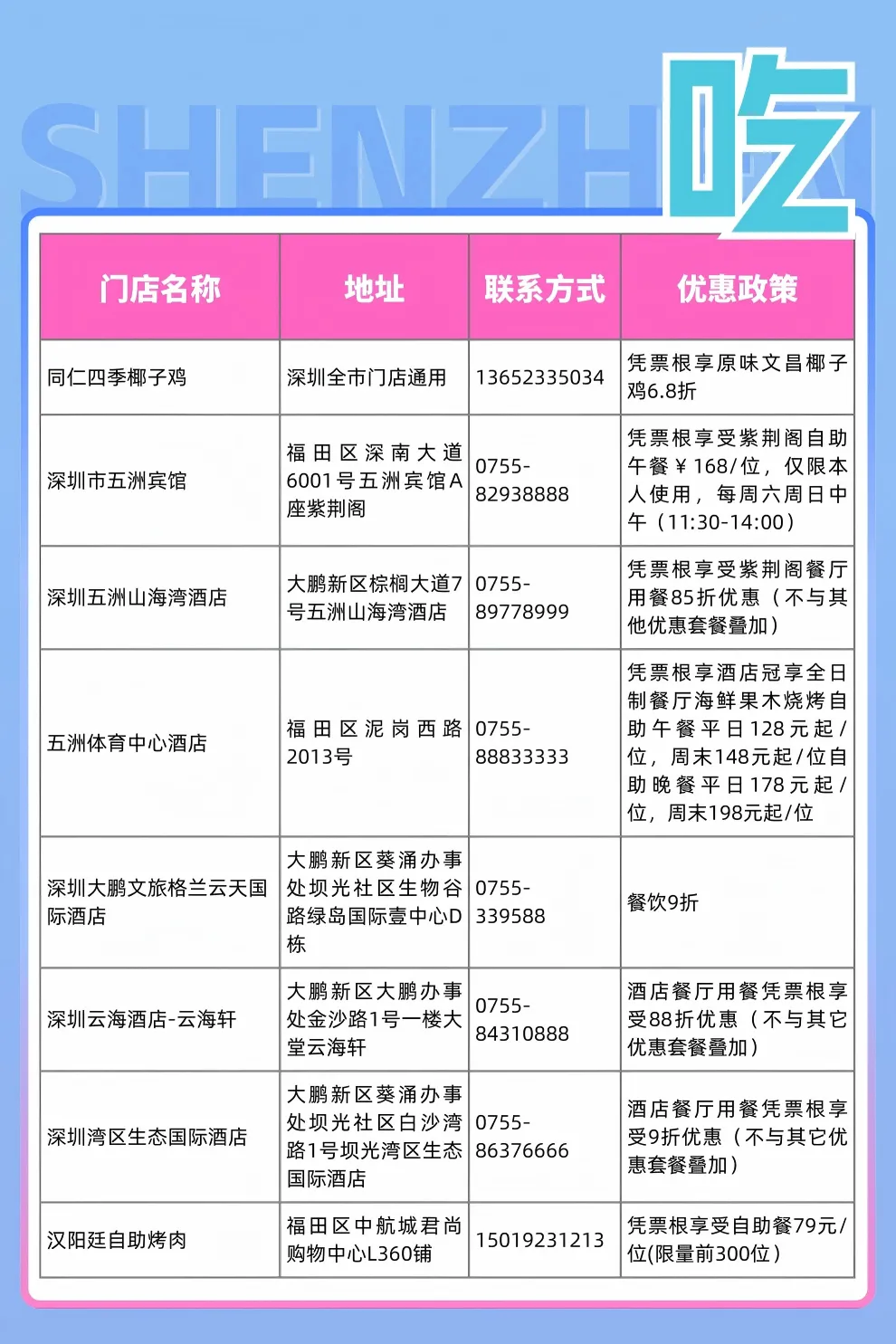 深圳中海凯骊酒店、深圳园山希尔顿欢朋酒店、深圳丽湾酒店等推出凭票根可享门市价8折活动。