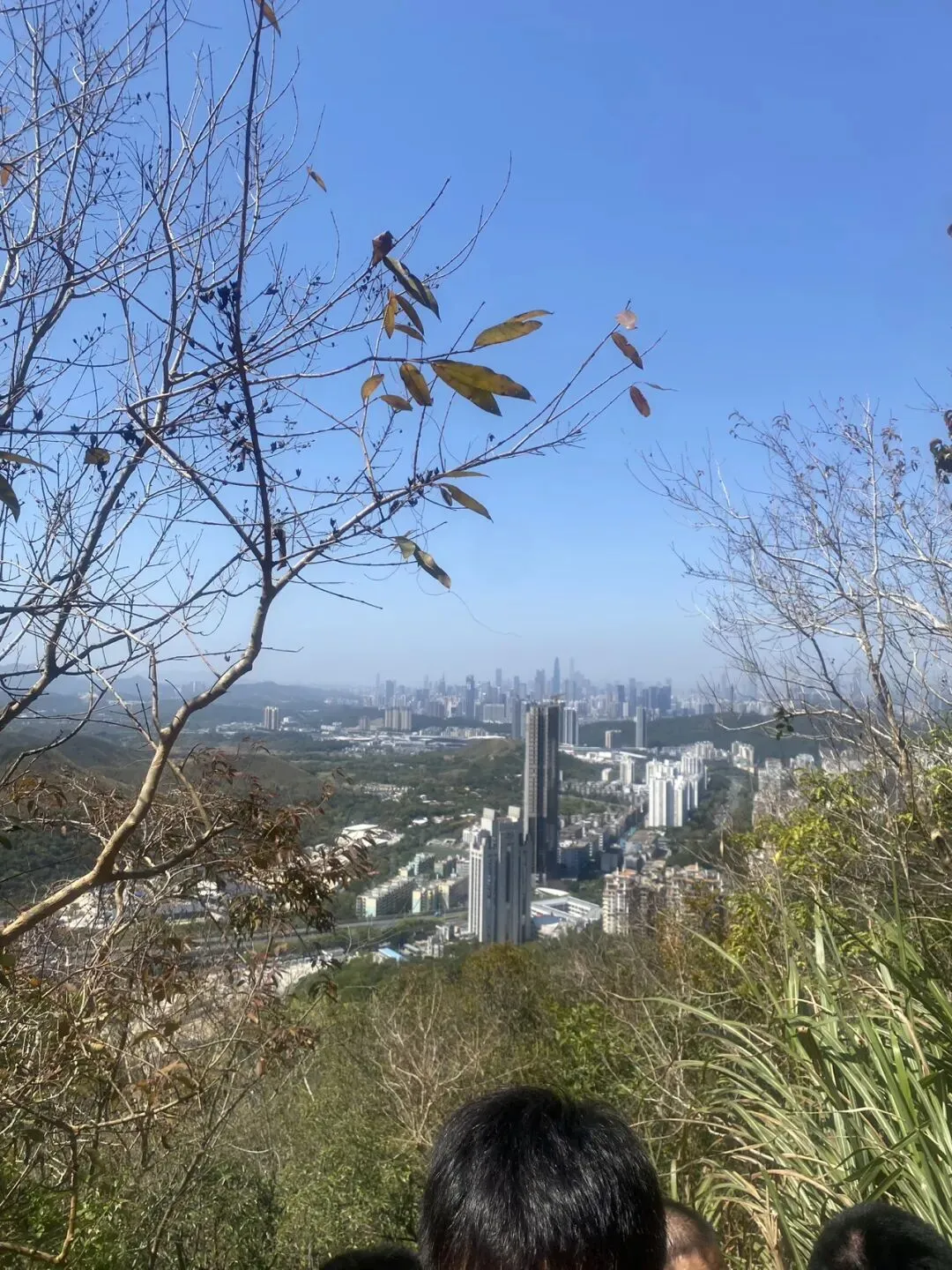 不过当天天气确实好。蓝天、白云,远远就能看到香港。我爬得比较慢,差不多两小时才爬上小梧桐。深圳电视塔是打卡必拍点,春光明媚,山花烂漫,山上的景色比山下美太多了。站在小梧桐眺望远方,刚才爬楼梯的怨气倒也消散了不少。