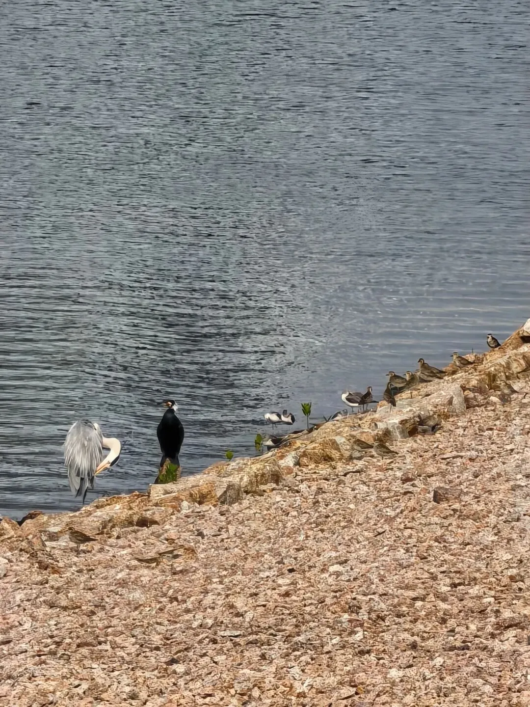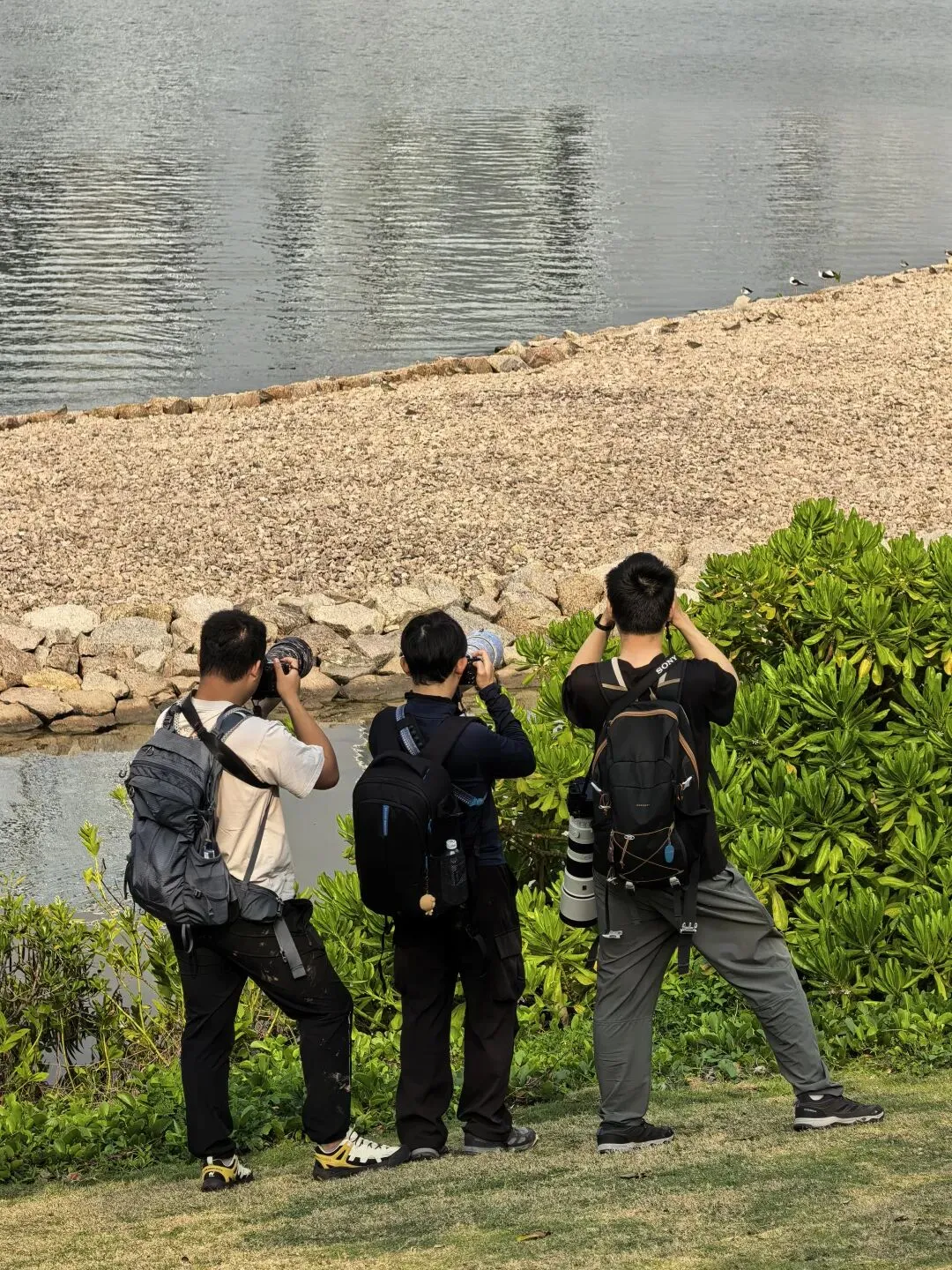 晨跑的人已经陆续折返,打鸟人的队伍也散了大半,只有三三两两的摄影爱好者还守在岸边,等着下一只飞鸟入镜。