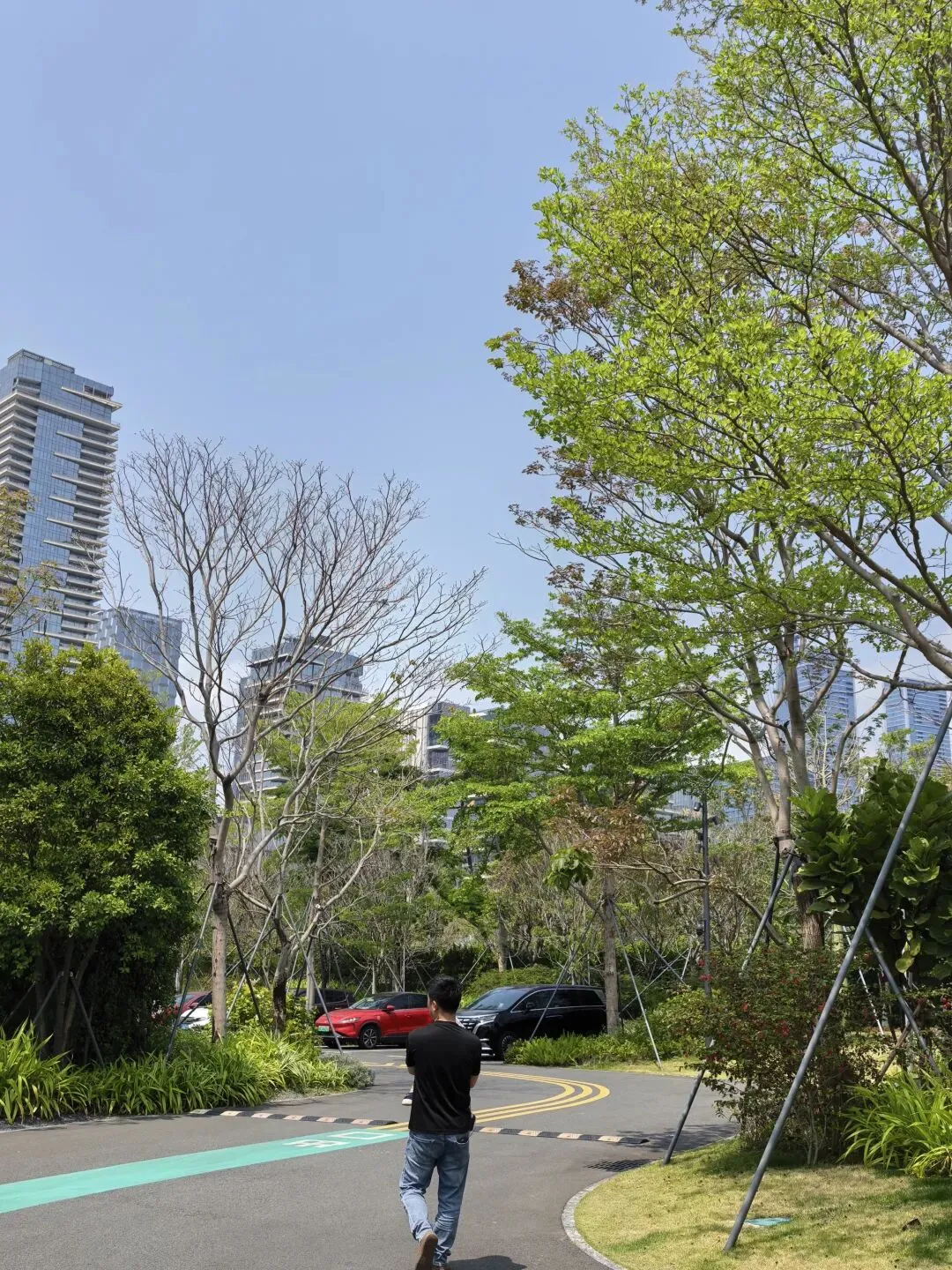 遛娃的、慢跑的、牵着狗散步的,各得其所。阳光斜斜洒下来,把人的影子拉得又细又长,仿佛连时光都被抻得慢了些。