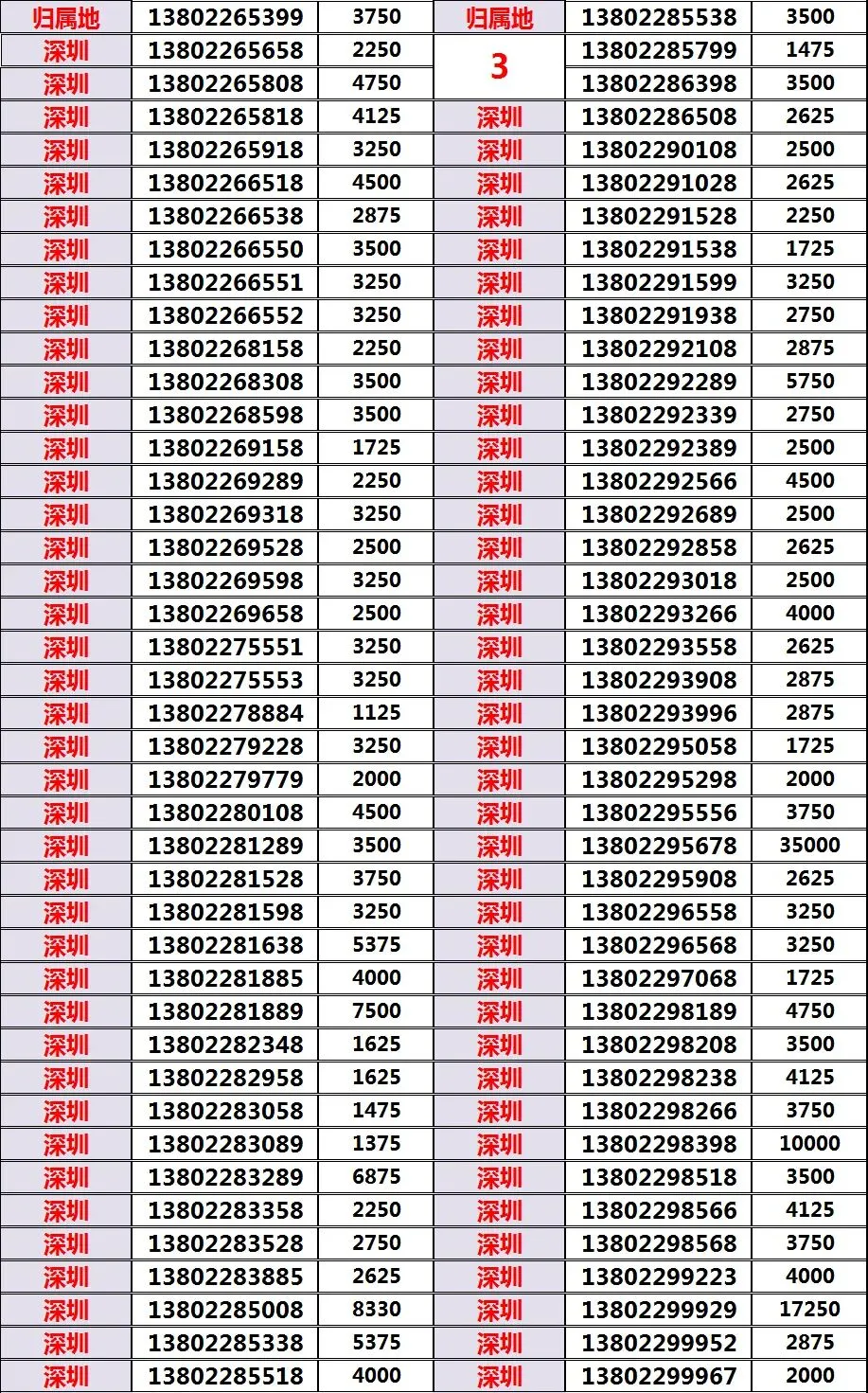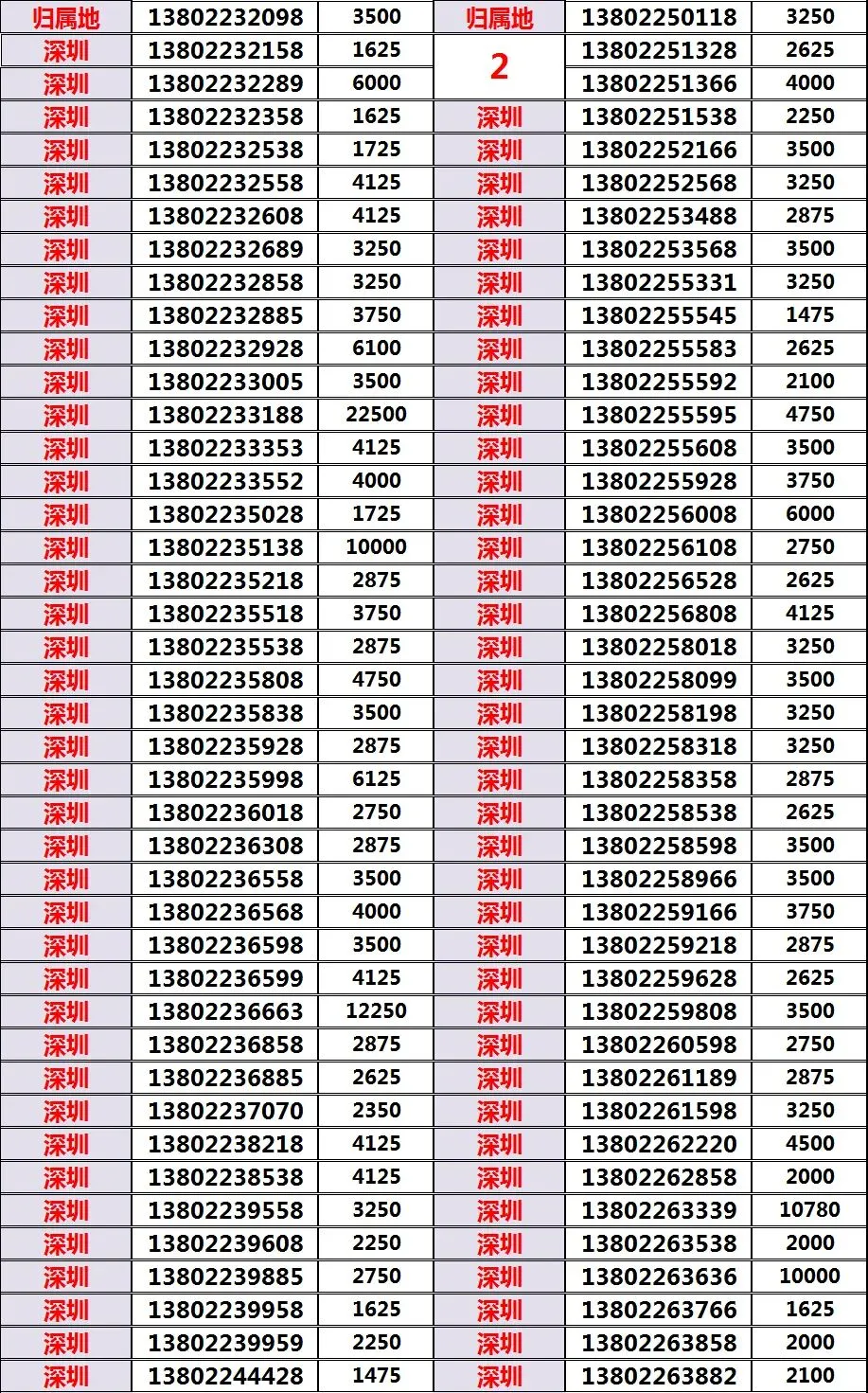 深圳138022经典版、经典老号码