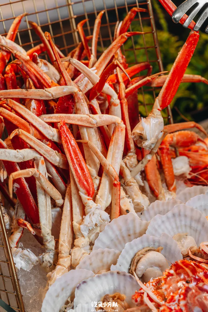 琳琅满目的“海底世界”直接搬到了餐桌上,晚市专属任吃的小青龙、雪蟹腿、红花蟹、三点蟹、老虎蟹、扇贝等数十款冰镇海鲜都任吃不限量。只只饱满肉厚的龙虾,搭配各式蘸料酱汁,感受海洋的鲜甜气息。