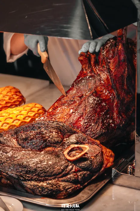 肉食爱好者钟爱的西式肉车,是自助餐人气档口,每天轮换2-3款,共供应7款各具特色的肉类,如“18小时低温慢烤带骨和牛”、“意大利香醋烤牛肋排”、“坚果烤羊扒”等,展现了大厨们的高超烹饪艺术。