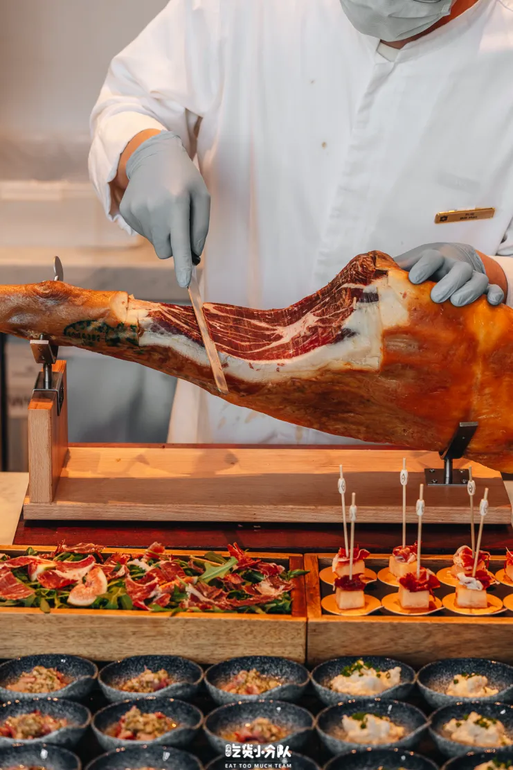 每次来吃自助,西班牙火腿也是不能少的保留曲目,整腿看着大厨现场片成薄片,真的很诱人。
