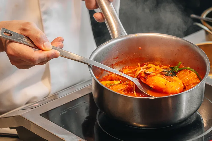呼应“东亚食集”的主题,新增加了热辣鲜香的韩式档口,各式韩式料理任吃,其中最值得推荐的是“泡菜汤现煮海鲜”,海鲜自选交给厨师现煮,独家秘制的泡菜汤,香得勾人,再煮一饼韩式泡面,简直大饱口福。