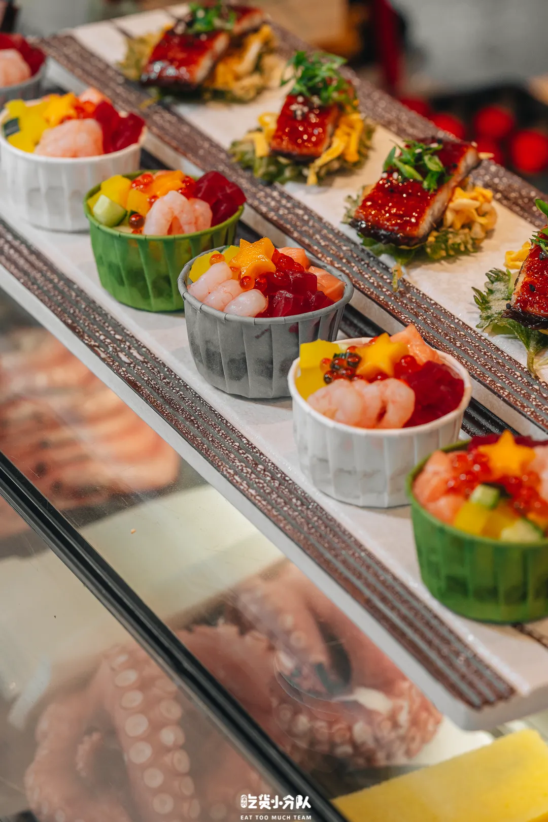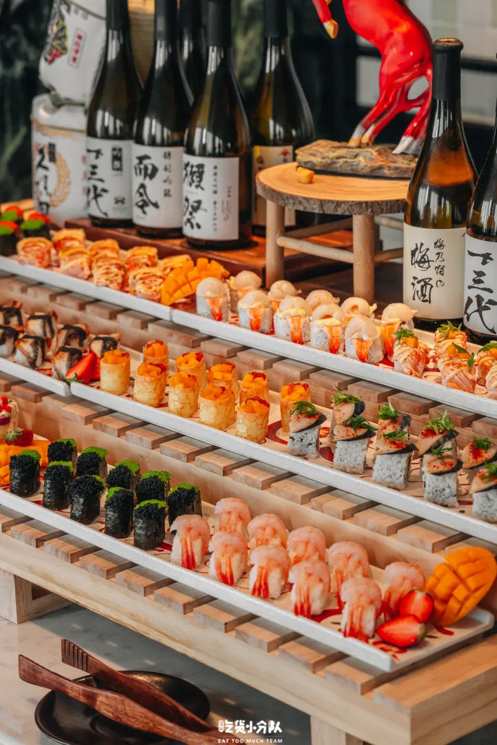 日料档供应6种现切的刺身,喜欢吃刺身的朋友可以一饱口福。除了刺身,还有十余款丰富的寿司,值得一提的是,日料档还有鹅肝丼饭、关东煮、烧鸟、大阪烧等特色菜,这些以往很少出现在自助餐的菜品。