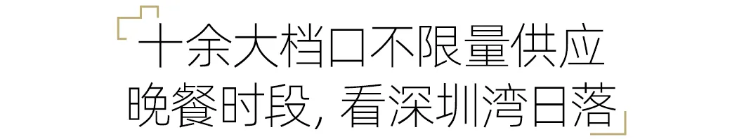 另外还有多个自助餐档口不限量供应美食,如果你是晚市前来,就能俯瞰湾景,坐拥深圳湾最美日落。