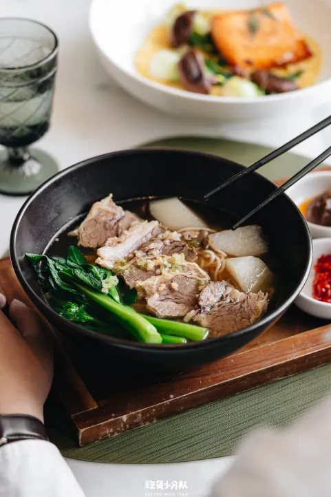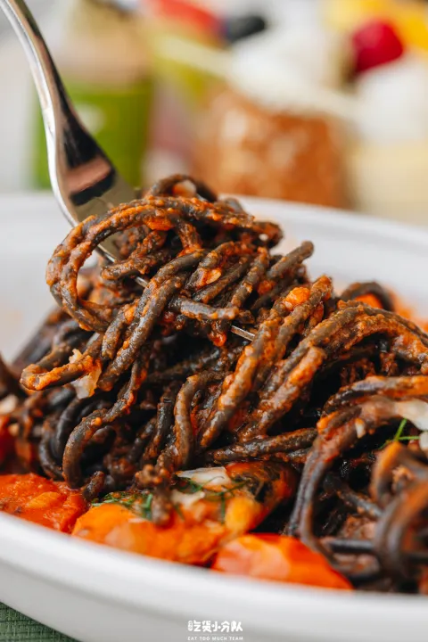主厨推荐菜新增了一些创意料理:巴东牛肉配小油条、海鲜墨汁意粉和韩式BBQ汁牛肉芝士饭,分量都很扎实。(黑虎虾/三文鱼需额外加收98元)