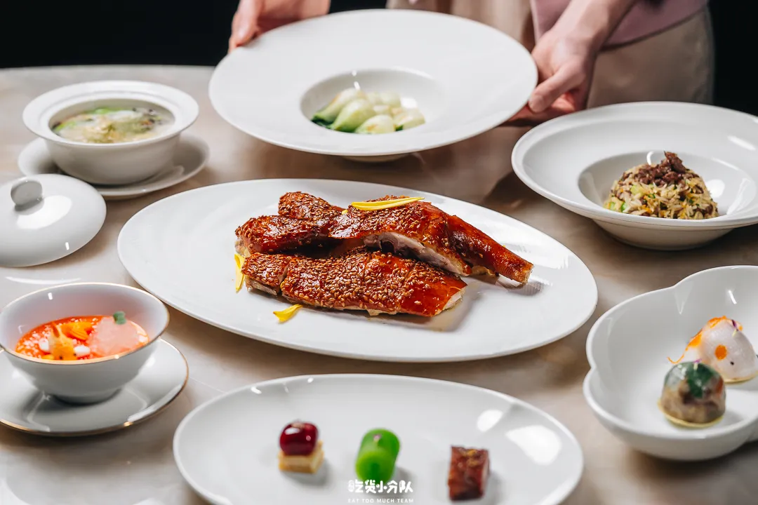 套餐包含了6道主厨招牌菜,可以任选一道心头好。其中“古铜脆皮麻香鸡”,上桌就能闻到勾人的香气,鸡皮多余的油脂被逼出,只剩一个“脆”字,撒上亚麻籽,满口香。“玻璃乳鸽”传承经典做法,薄脆透光,咬破时有"咔嚓"声,肉质汁水充盈。“麻婆鲜虾豆腐”将经典川味革新,加入了Q弹的鲜虾,入口豆腐滑嫩,麻辣汤汁裹着海鲜的甜,越吃越上头。