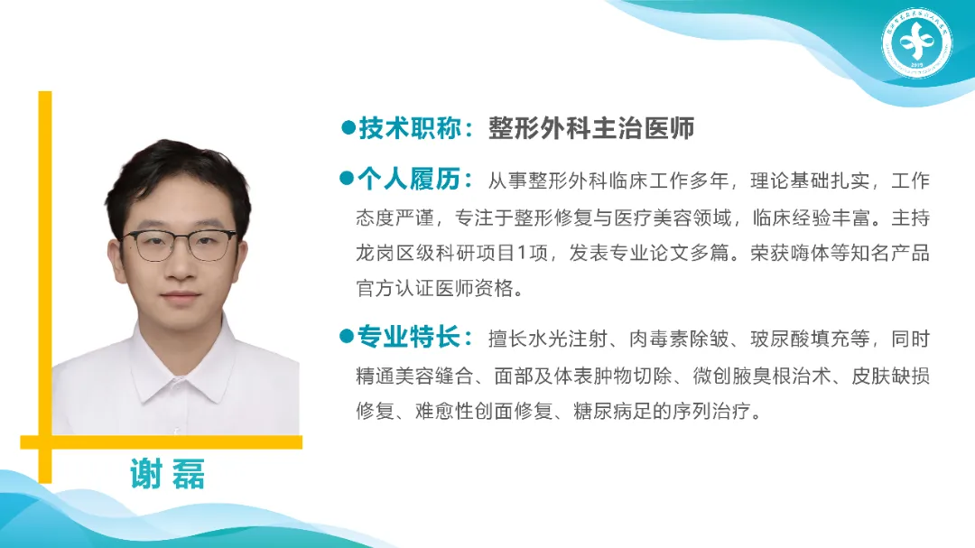 中心由25名专业医师的权威专家团队实力护航,其中二级教授1名、主任医师5名、副主任医师3名,博士12名、硕士13名,博导2名、硕导9名。中心开设唇腭裂序列治疗、耳廓整形再造、鼻综合整形、眼整形美容、乳房整形再造、私密整形等、毛发移植、瘢痕综合治疗、创面修复、光电治疗血管瘤综合治疗、轻医美轮廓重塑、生物医药抗衰、美容缝合、生活美容、皮肤病诊治等10余个极致整形美容亚专业。